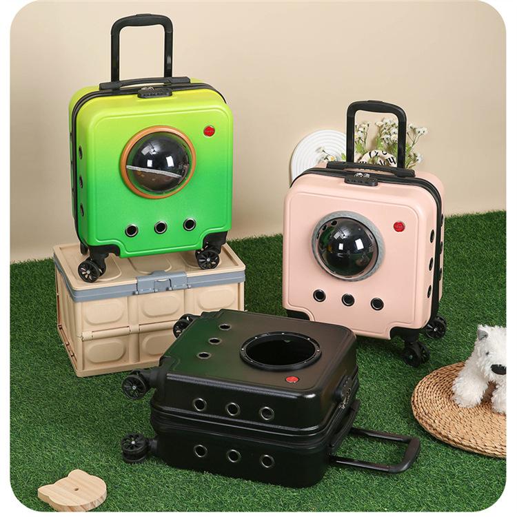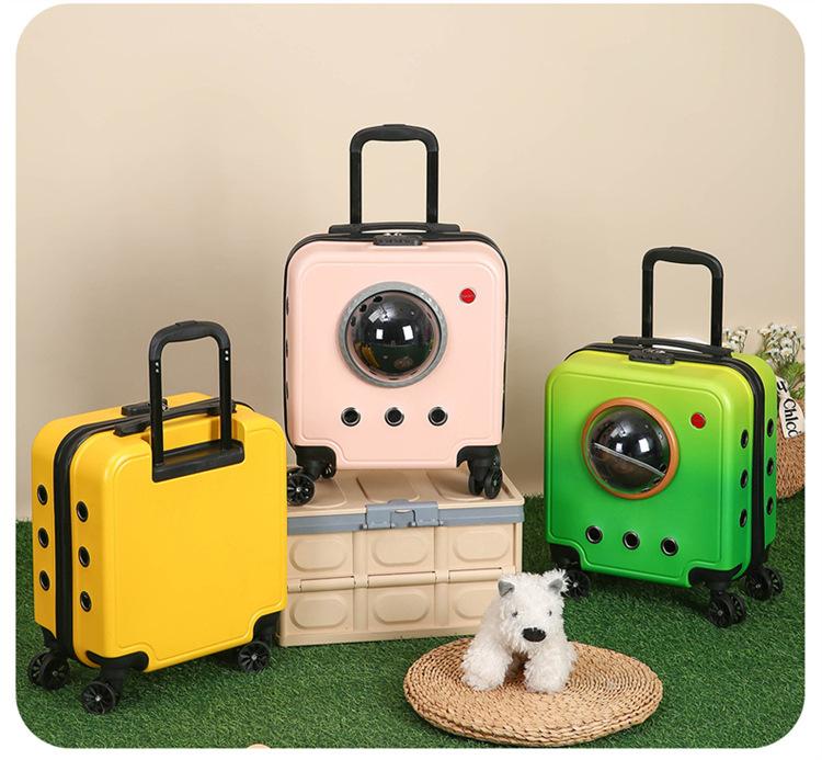 Maleta portátil con ruedas para mascotas, transparente, de gran capacidad, para gatos