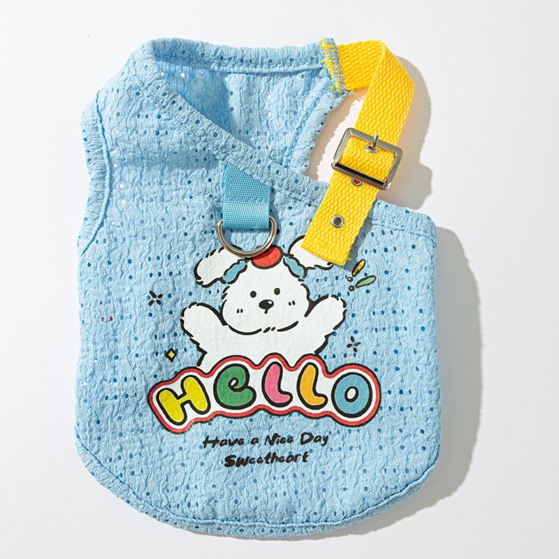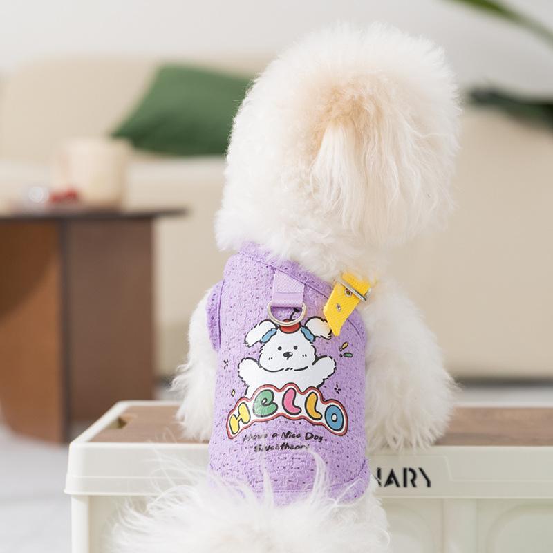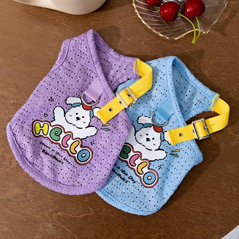Compra Primavera y Verano Perro Lindo Cachorro Tirantes Huecos Impreso Chaleco Gato Perro Mediano y Pequeño Ropa de Perro Teddy al por mayor en Joom.pro