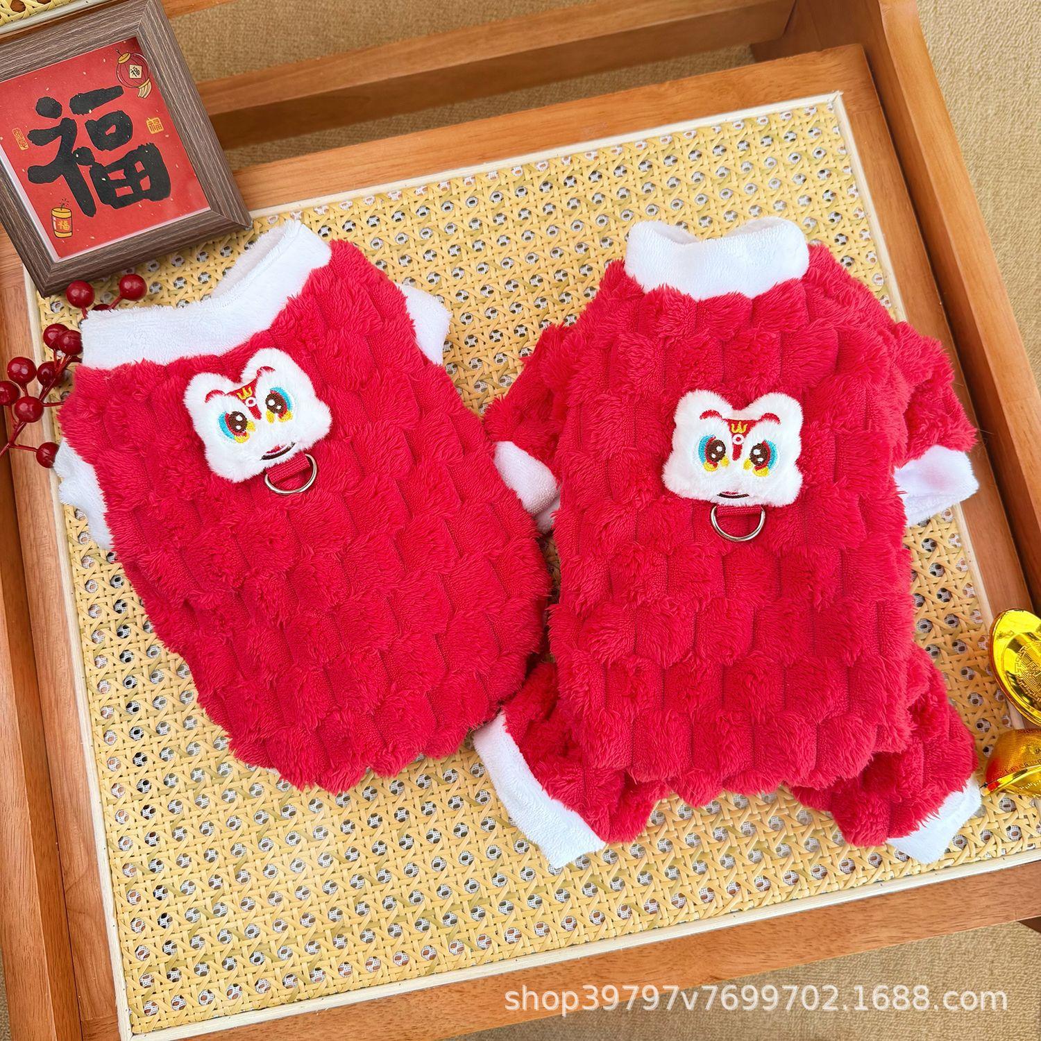 Ropa para perros de otoño e invierno Ropa festiva cálida para mascotas de Año Nuevo Ropa gruesa para gatos con forro polar Venta al por mayor de ropa para mascotas