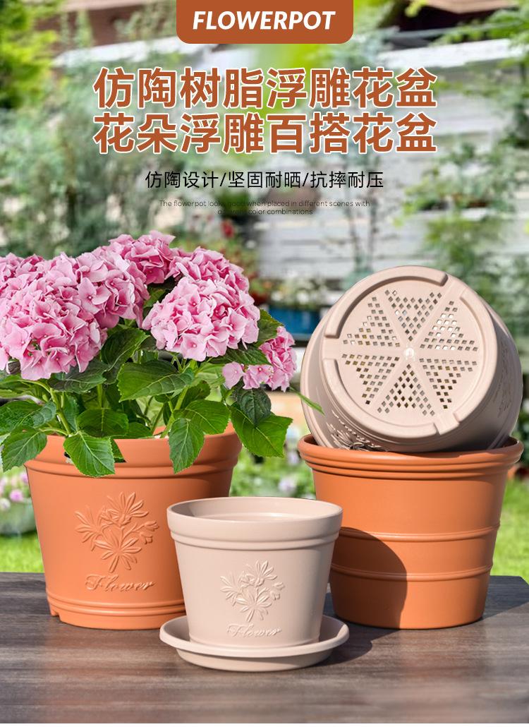 Maceta con relieve, gruesa, de gran diámetro, duradera, nueva, verde, para interior, de escritorio, redonda, de resina sencilla.