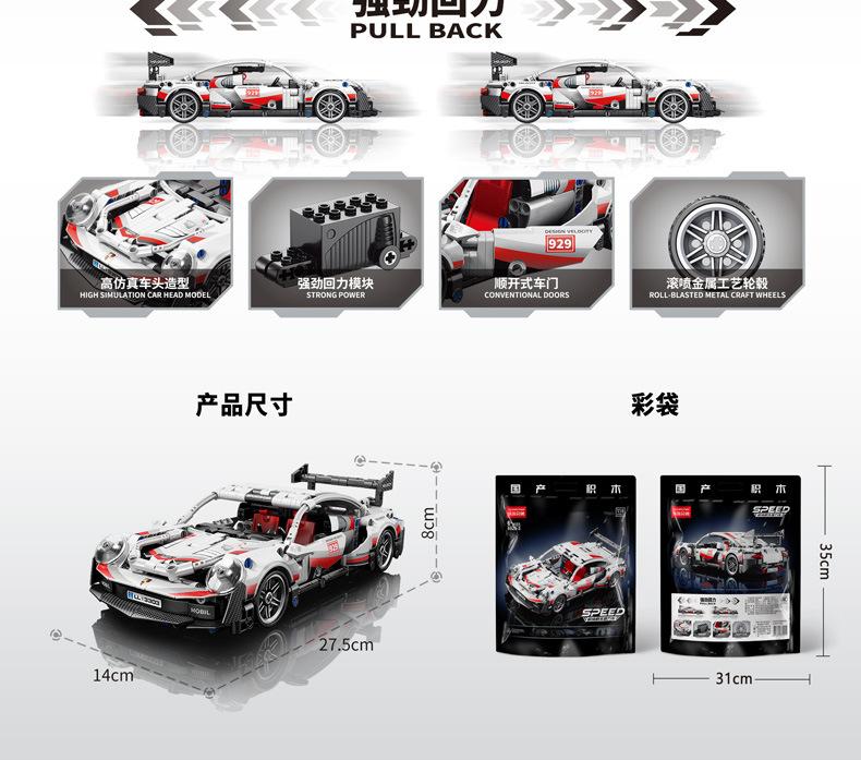 Bloques de construcción Lele Brothers para niños: juguete de coche Huili ensamblado de forma beneficiosa, compatible con Lego Boys Porsche.