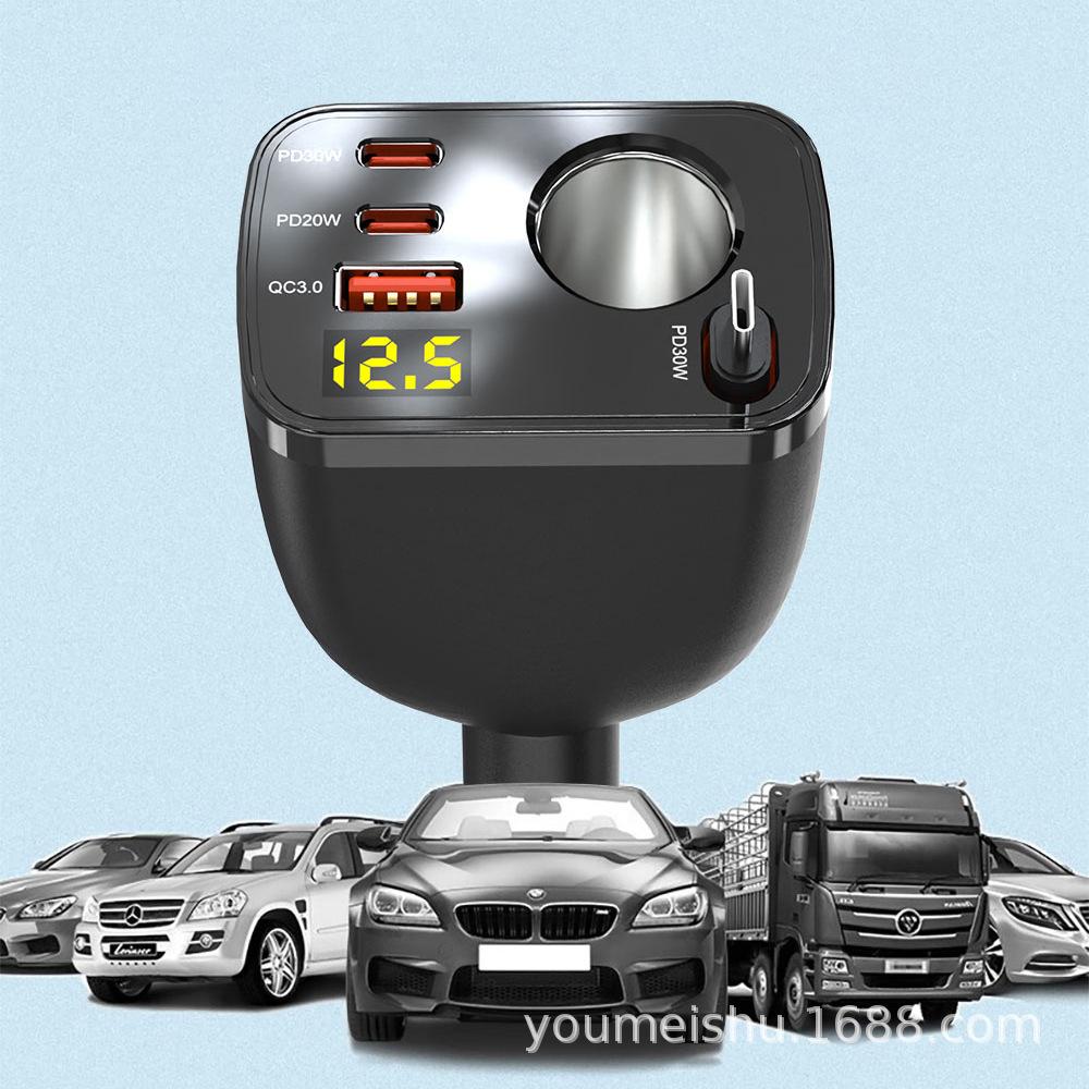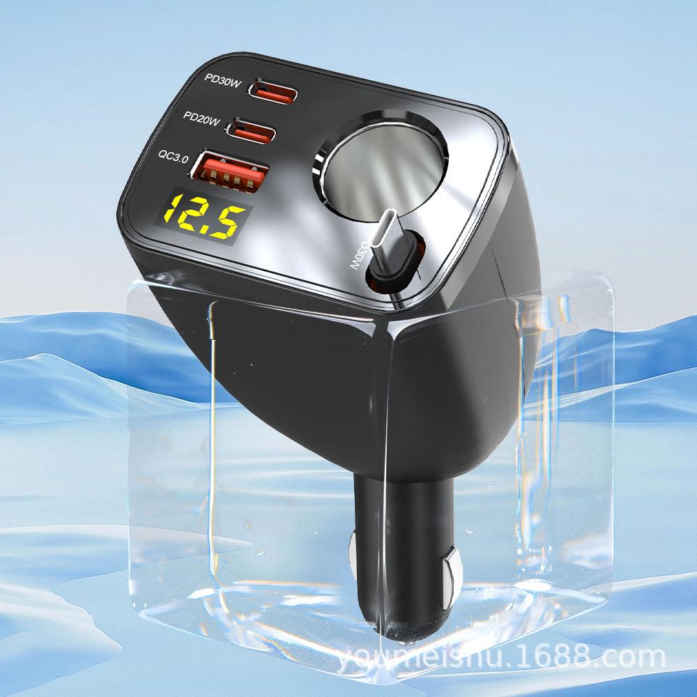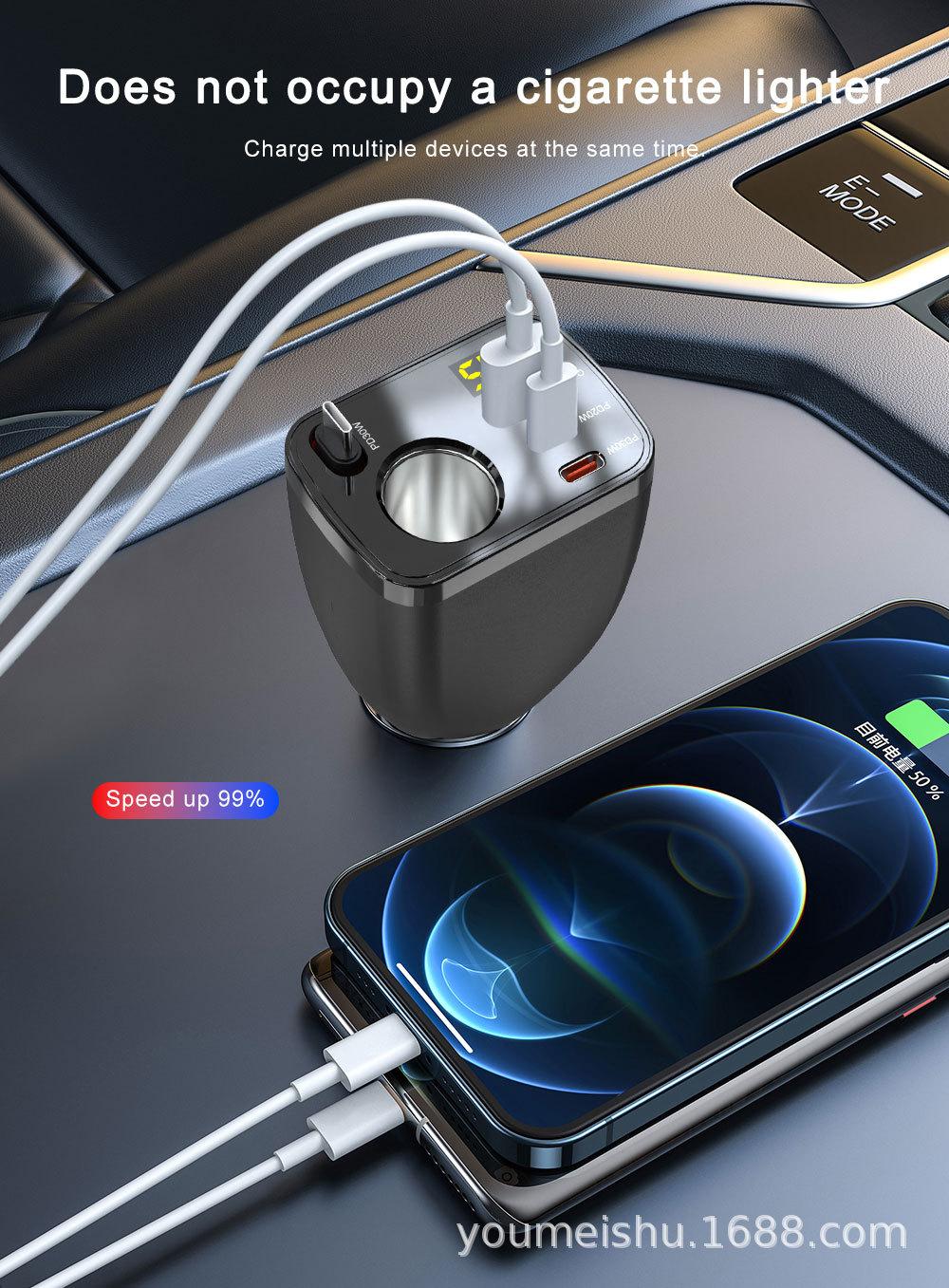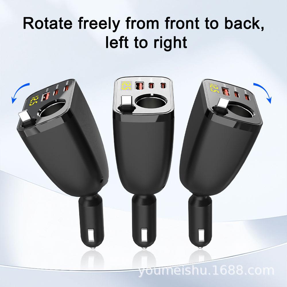 Encendedor de Cigarrillos Multifuncional Pantalla Digital Cargador de Coche Cable Carga Superrápida Pd30W Cable Retráctil Cargador de Coche Cuatro en Uno
