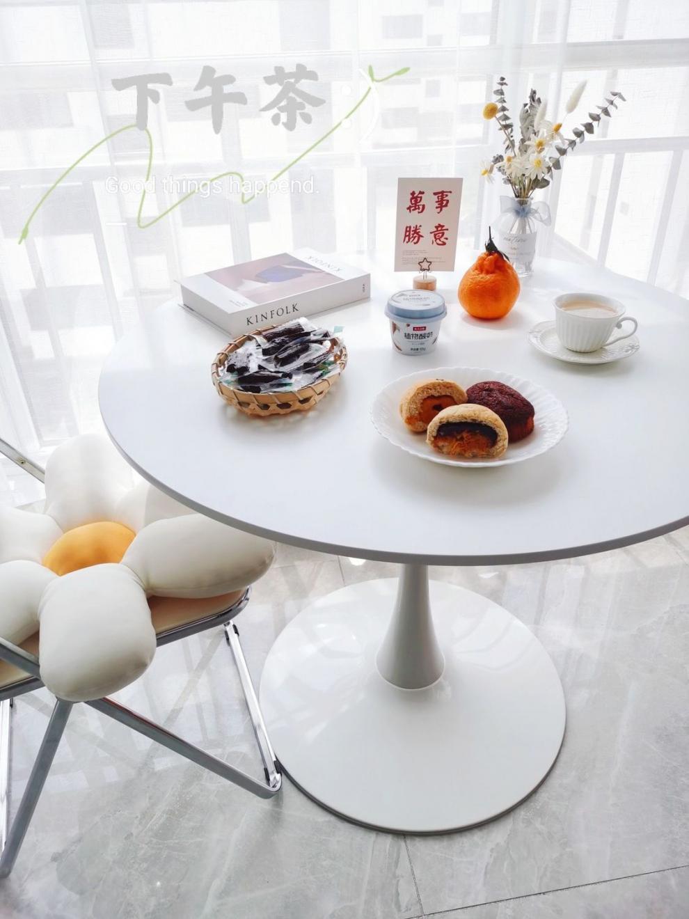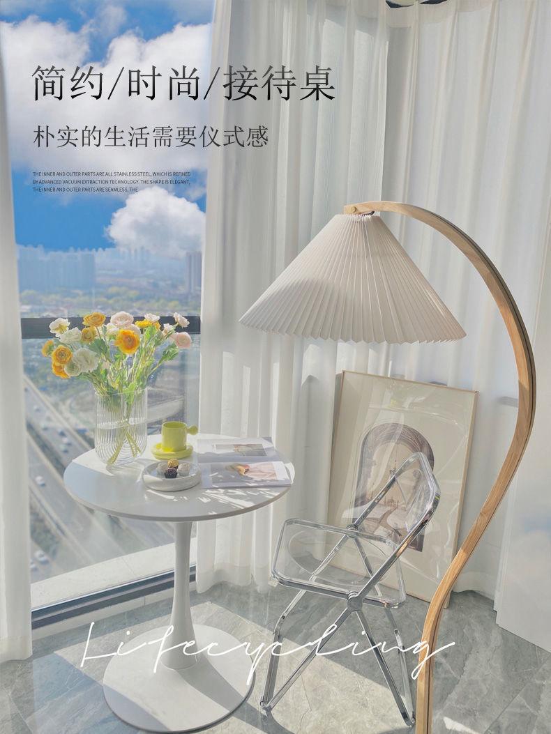 Mesa de centro nórdica con tulipanes para tienda de té con leche, mesa redonda pequeña para negociación, mesa de té redonda blanca informal y sencilla para balcón