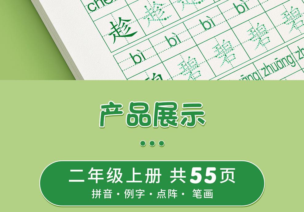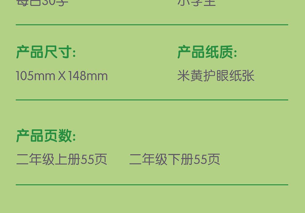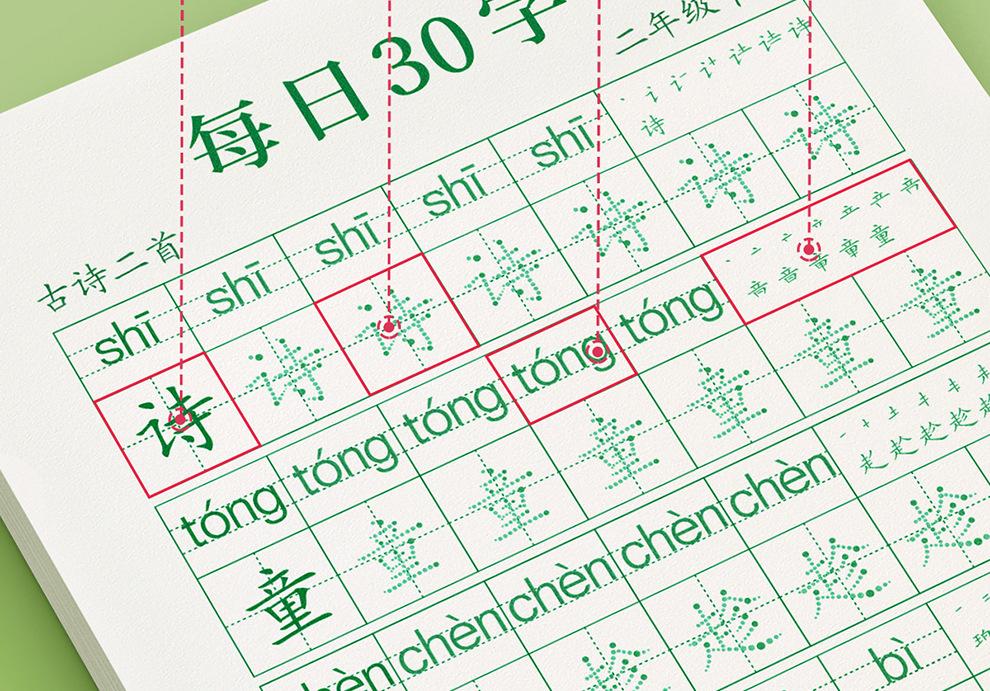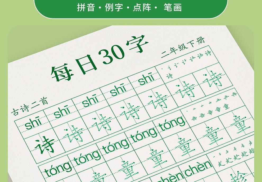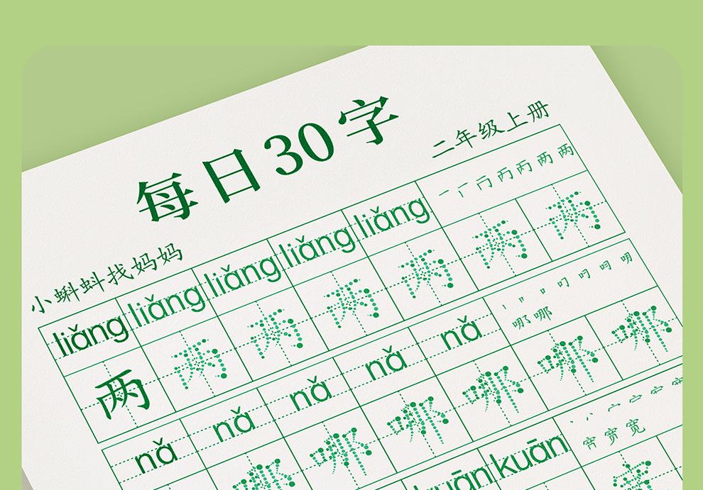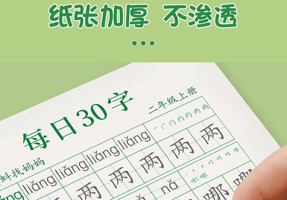 Segundo grado, segundo volumen, primer volumen, cuaderno sincrónico chino, 30 palabras al día para que los alumnos de primaria practiquen el cuaderno.