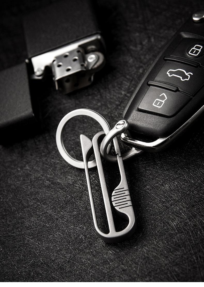 Compra Cinturón portátil de aleación de titanio para hombre, llavero con colgante, personalidad creativa, cadena de coche, llavero con hebilla al por mayor en Joom.pro