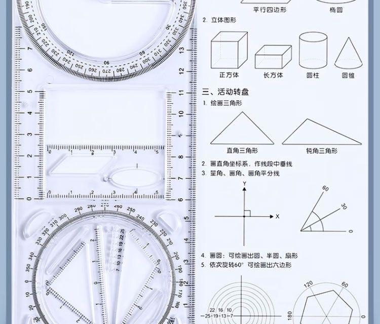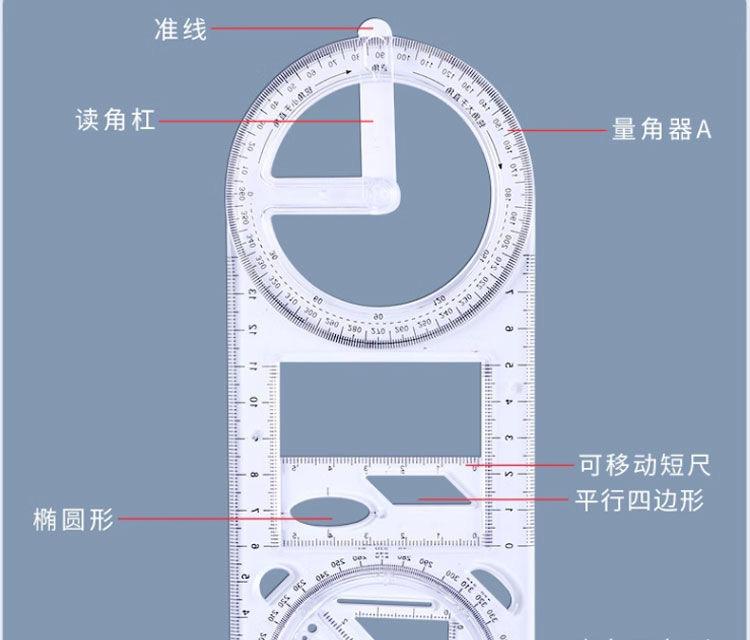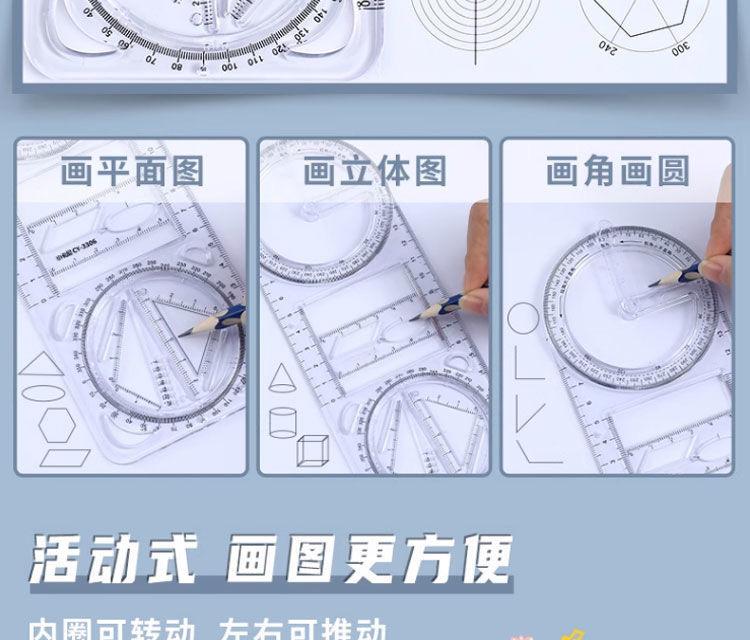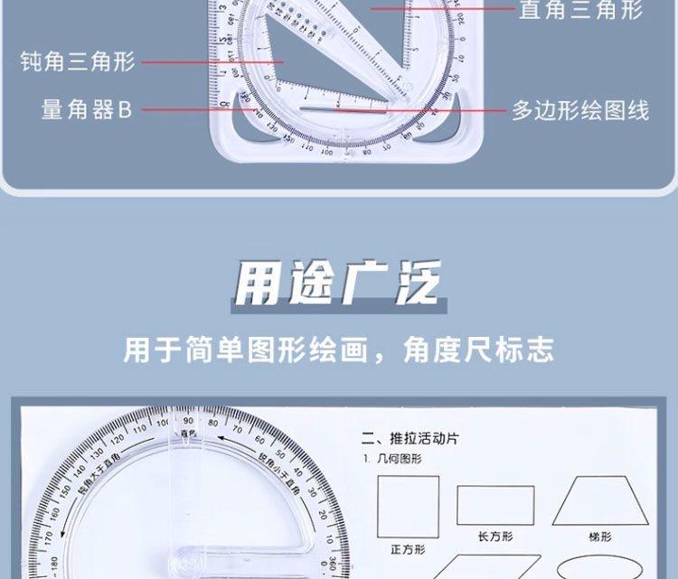 Compra Regla de dibujo geométrico multifuncional, para estudiantes de secundaria y primaria, función de actividad, plano, dibujo gráfico, regla de ángulo, plantilla de transportador al por mayor en Joom.pro
