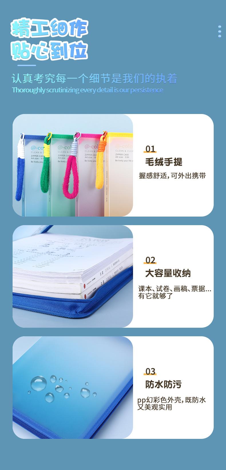 Bolsa de archivo portátil transparente A4 de gran capacidad con cremallera, bolsa de almacenamiento de material para papel de prueba para estudiantes, bolsa de almacenamiento impermeable y gruesa
