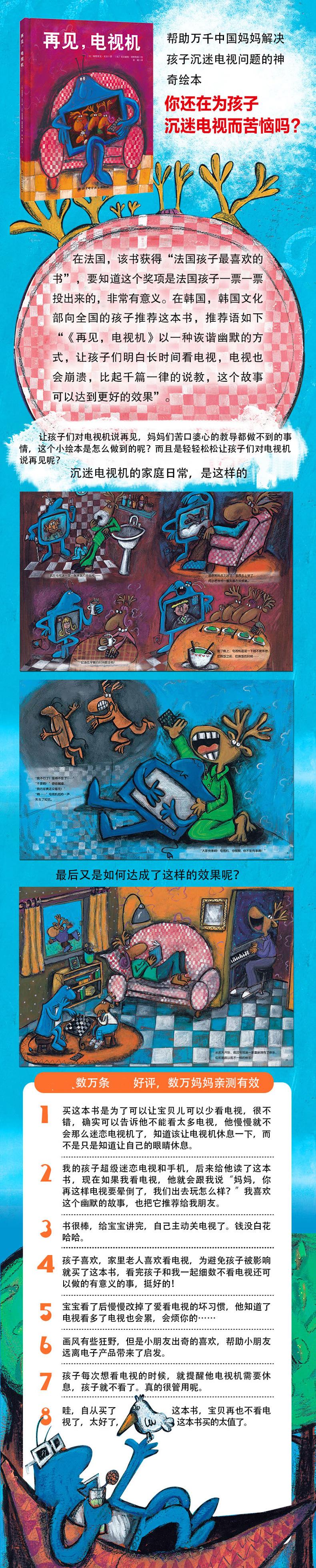 "Adiós, TV" utiliza una forma humorística para que los niños entiendan que si ven televisión durante mucho tiempo, la televisión también se averiará. Comparado con la misma vieja prédica, esta historia puede lograr el mejor efecto - Corea del Sur