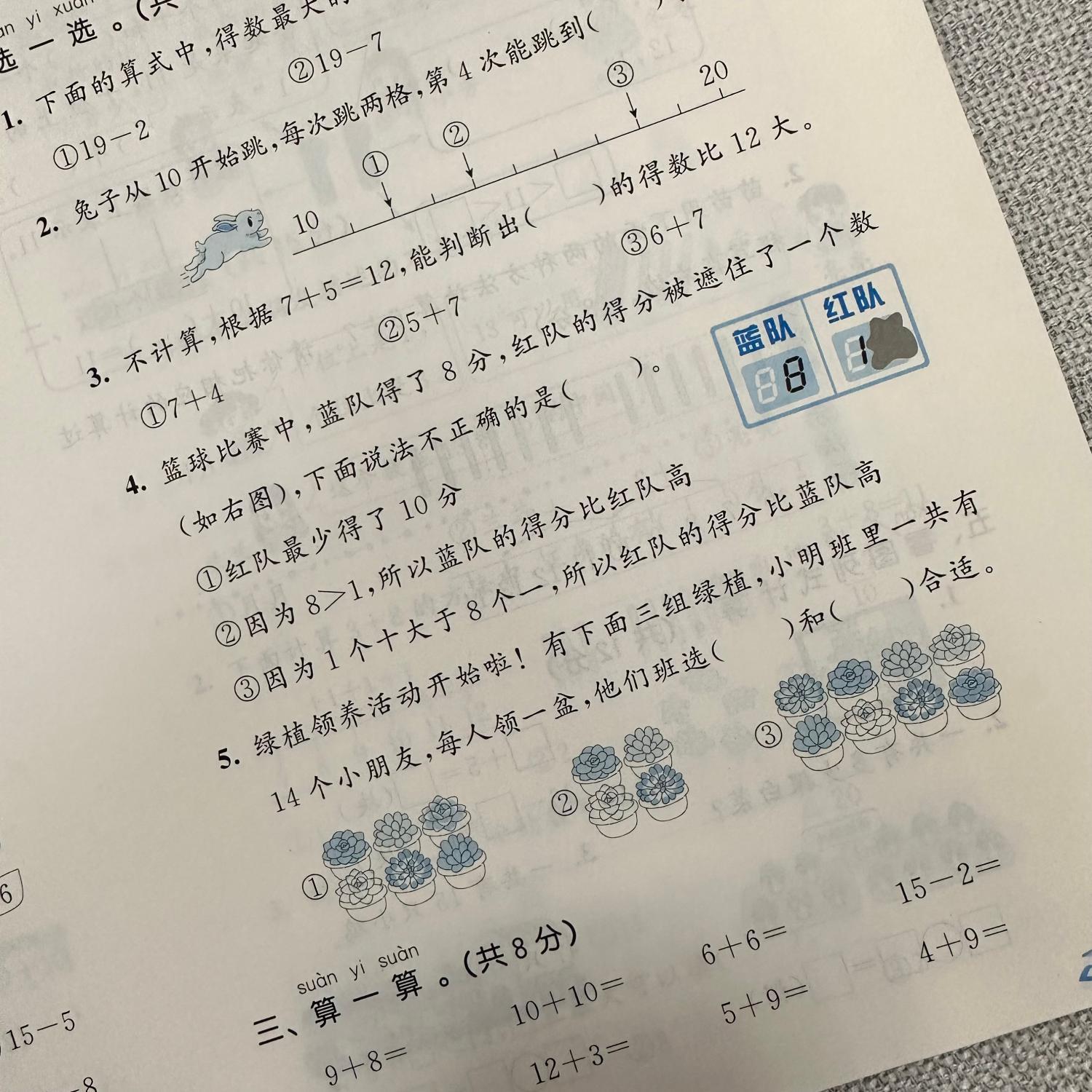 《5.3Cupón de Logro Completo.Matemáticas de primaria primer grado.Volumen II:BSDEditor en jefe: Qu Yixian