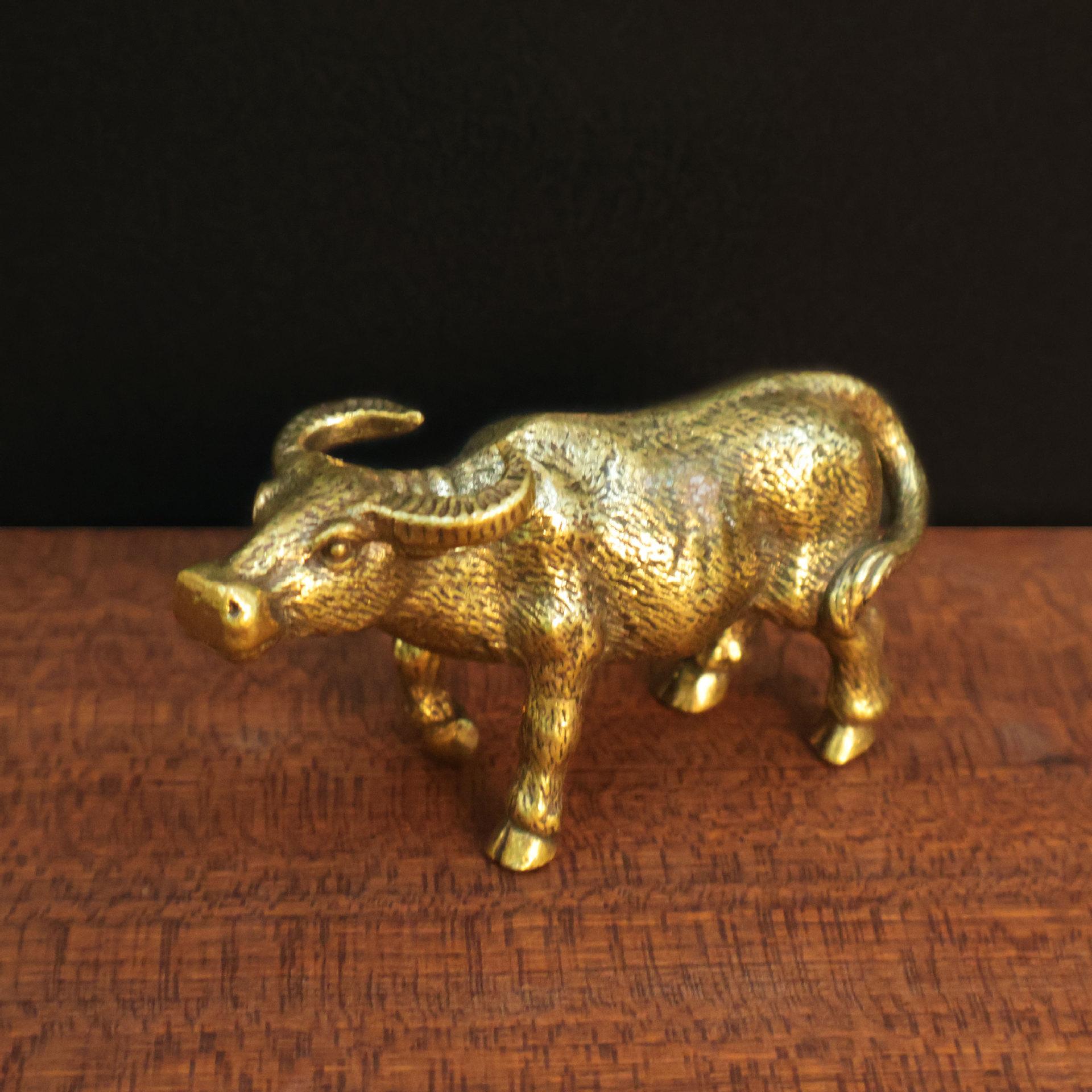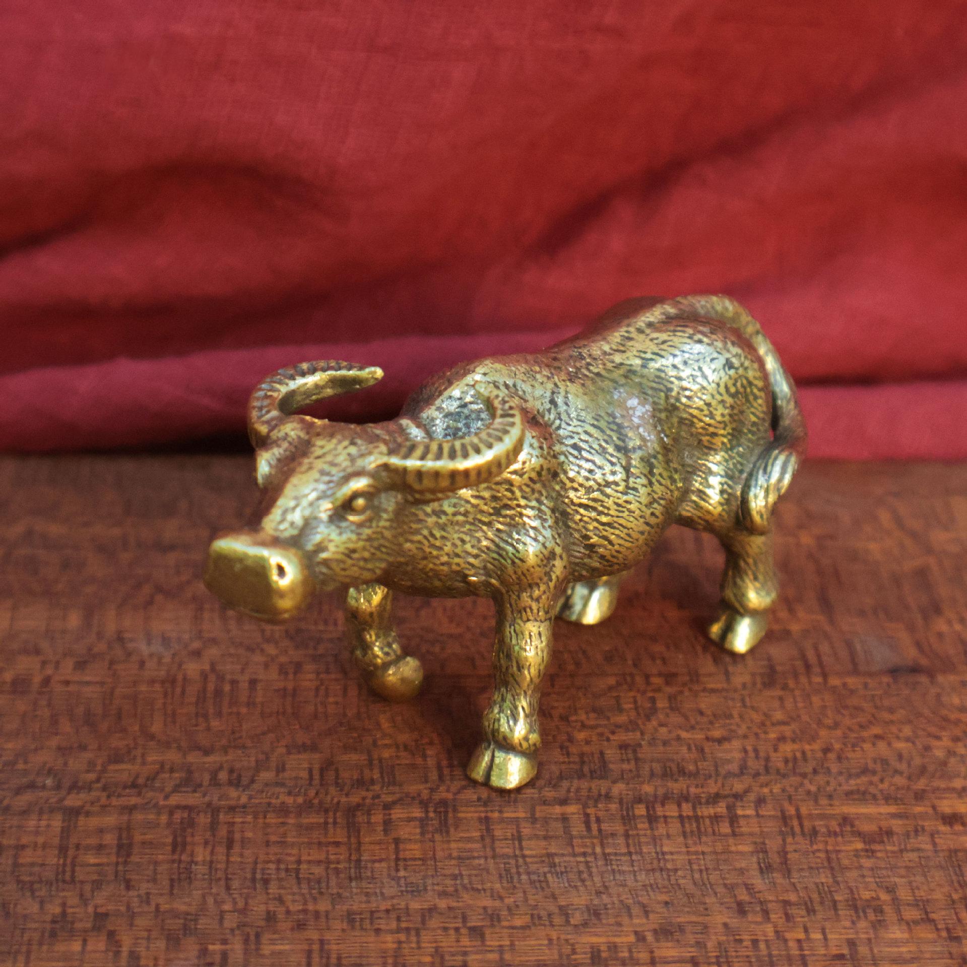 Compra Pequeños adornos de búfalo de latón macizo, retro, de bronce, para el zodíaco, ganado, té, mascota, animal de escritorio, sala de estar para ganar dinero y paz. al por mayor en Joom.pro