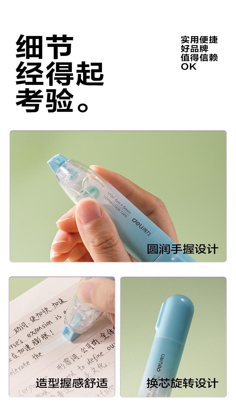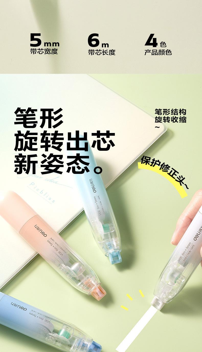 Compra Deli V06 Cinta Correctora 5Mm*6M Cinta Correctora Especial de Alta Calidad para Estudiantes de Primaria y Secundaria, Cinta Correctora Suave al por mayor en Joom.pro