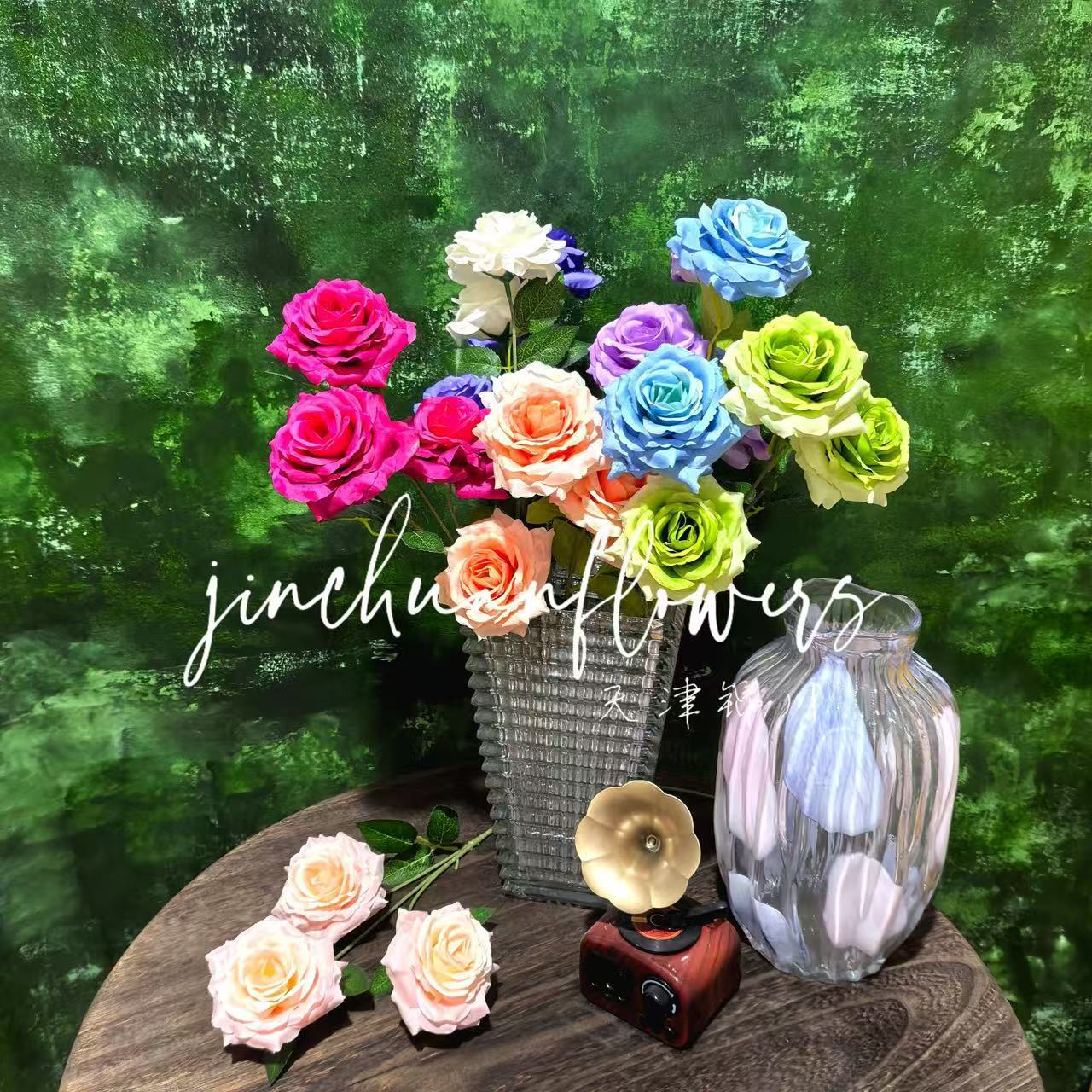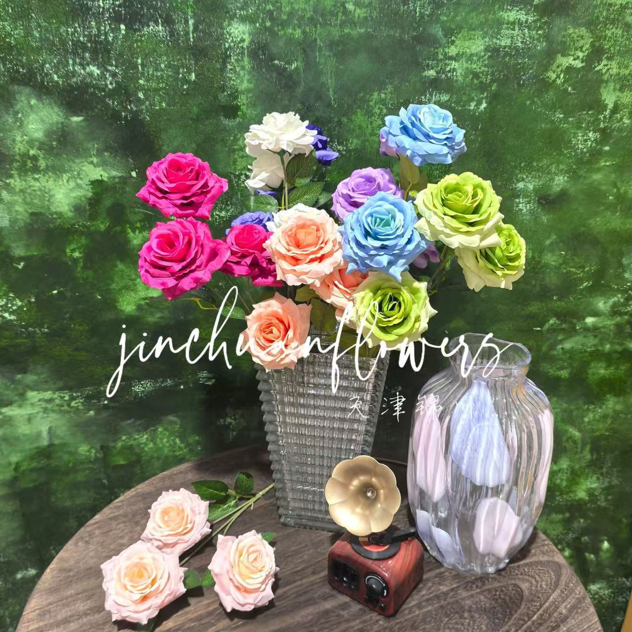 Rosa de simulación, 3 rosas para enamorados, flores de simulación, rosa con degradado, flores de simulación, flores de boda, accesorios para hileras de flores