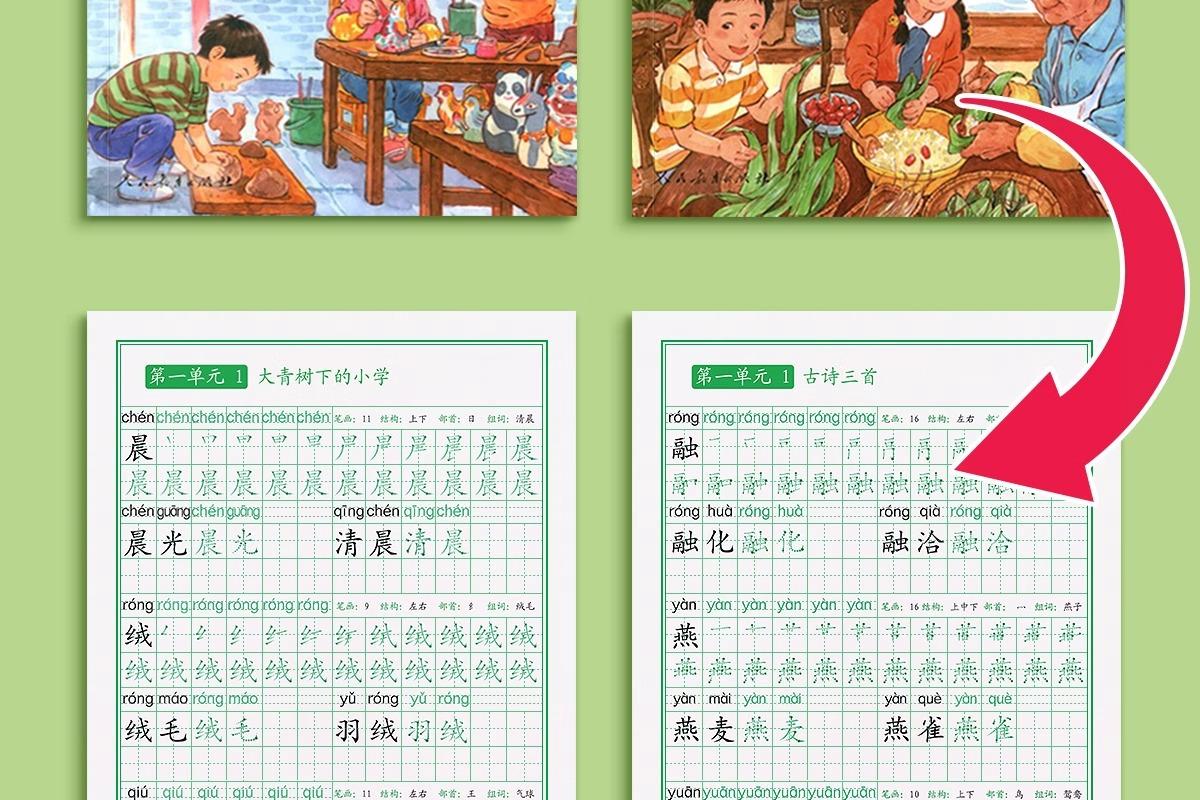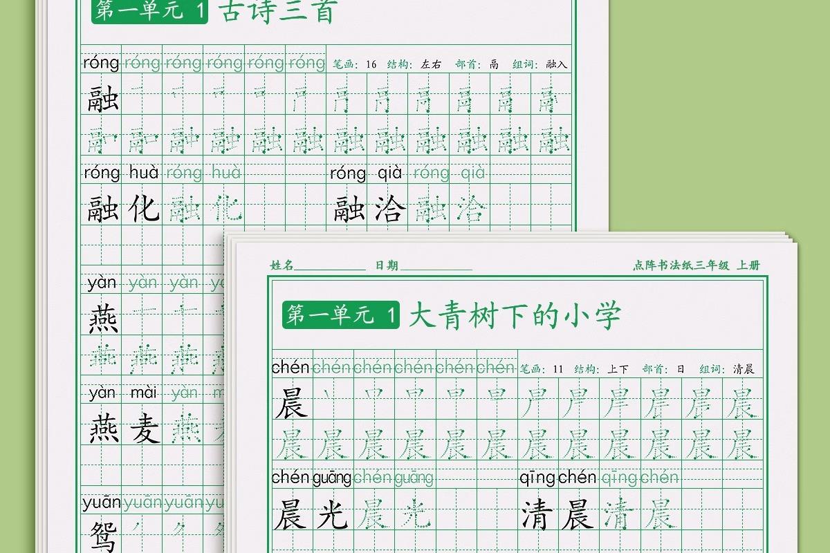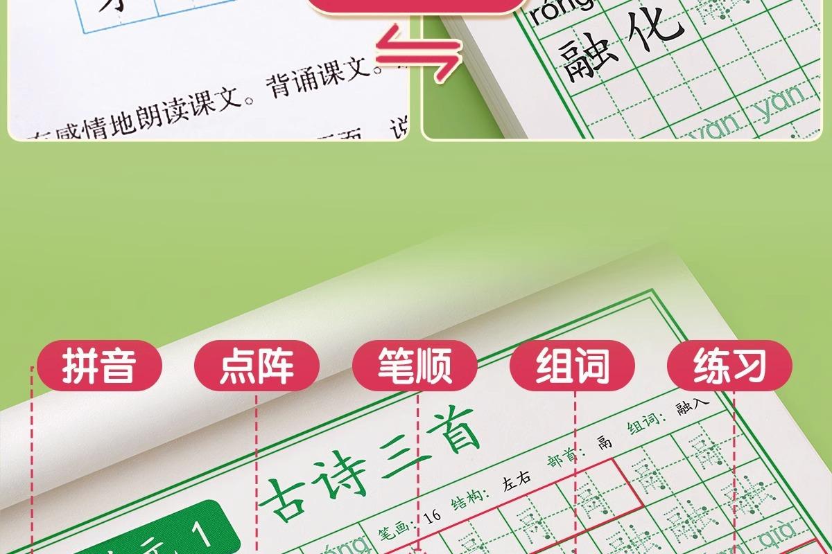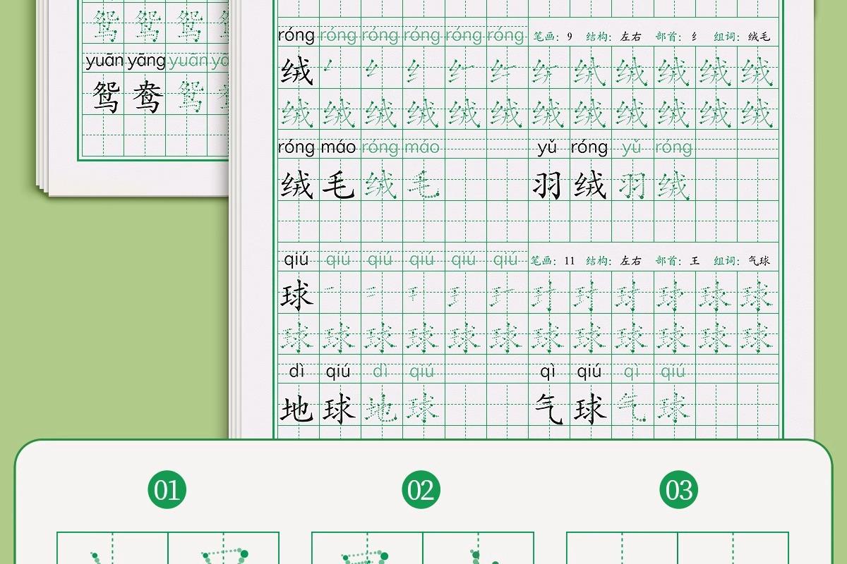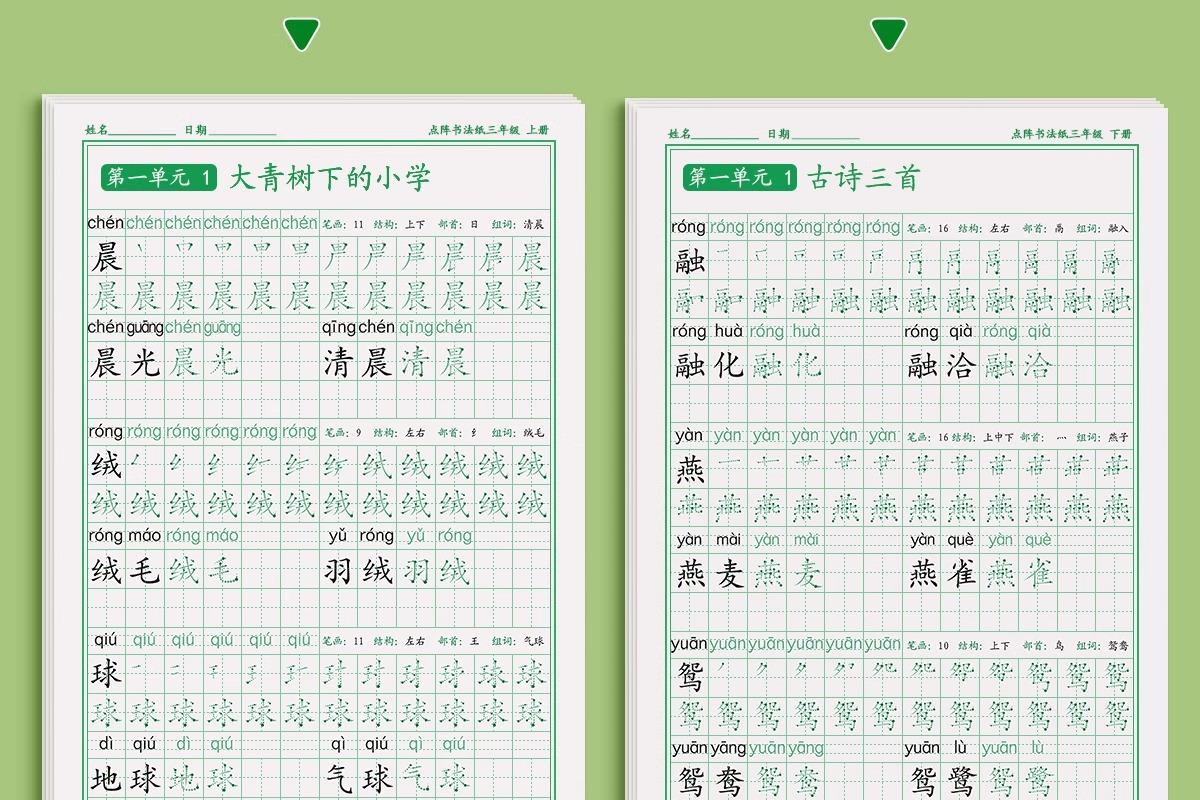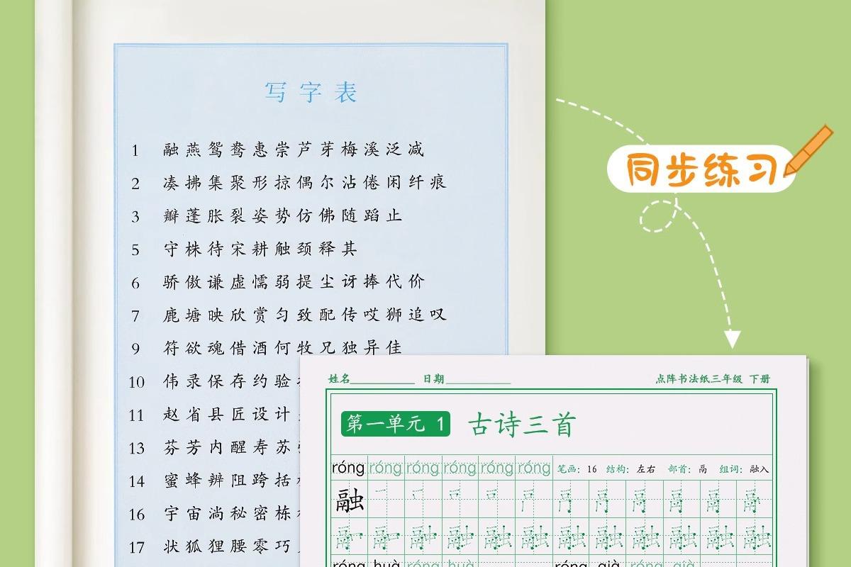 Práctica de cuaderno de tercer grado, primer y segundo volumen para estudiantes de escuela primaria, control de matriz de puntos especial, entrenamiento con lápiz, práctica sincrónica, práctica de cuaderno una vez al día