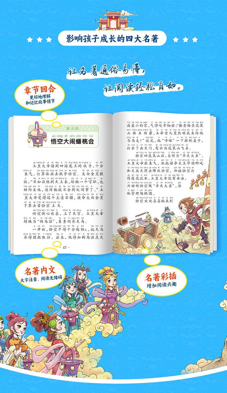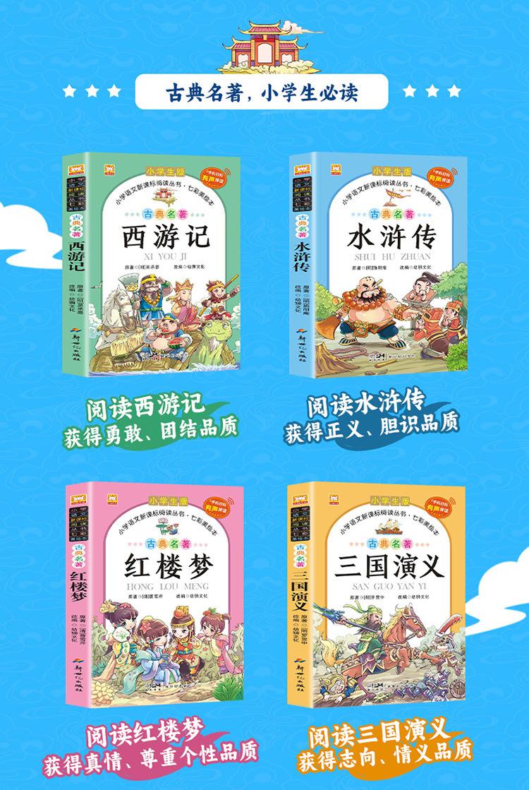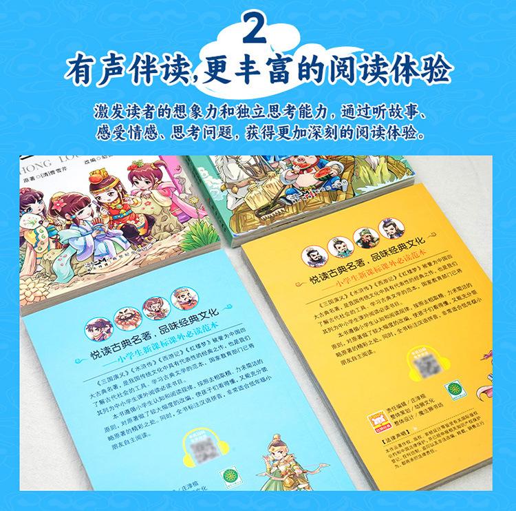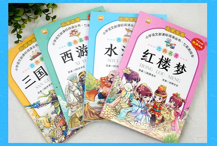 Las cuatro obras maestras, conjunto completo de estudiantes de primaria, viaje al oeste, romance de los tres reinos, margen del agua, sueño de mansiones rojas, versión completa de notación fonética
