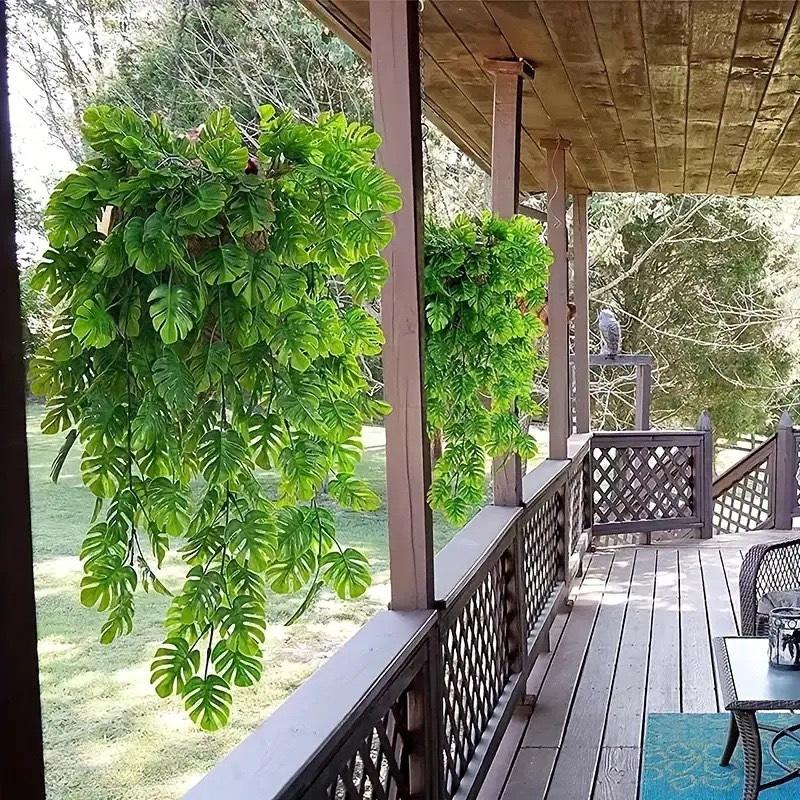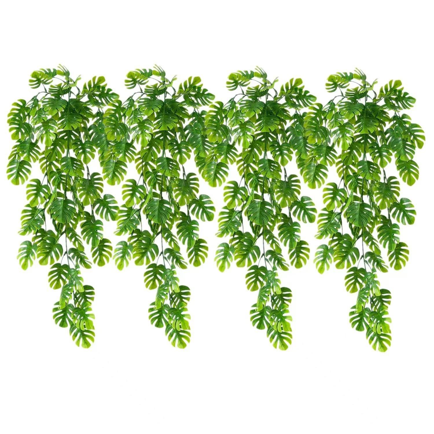 Planta de simulación de hojas de tortuga de ratán para colgar en la pared, hojas verdes, decoración para el hogar, boda, flores falsas.