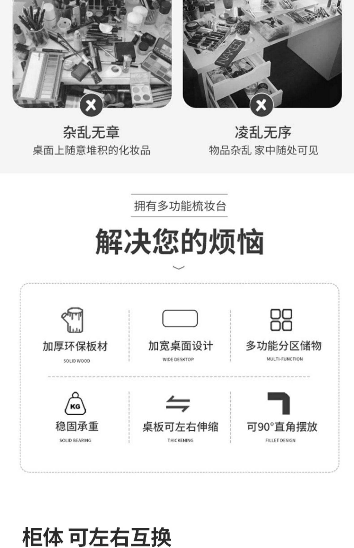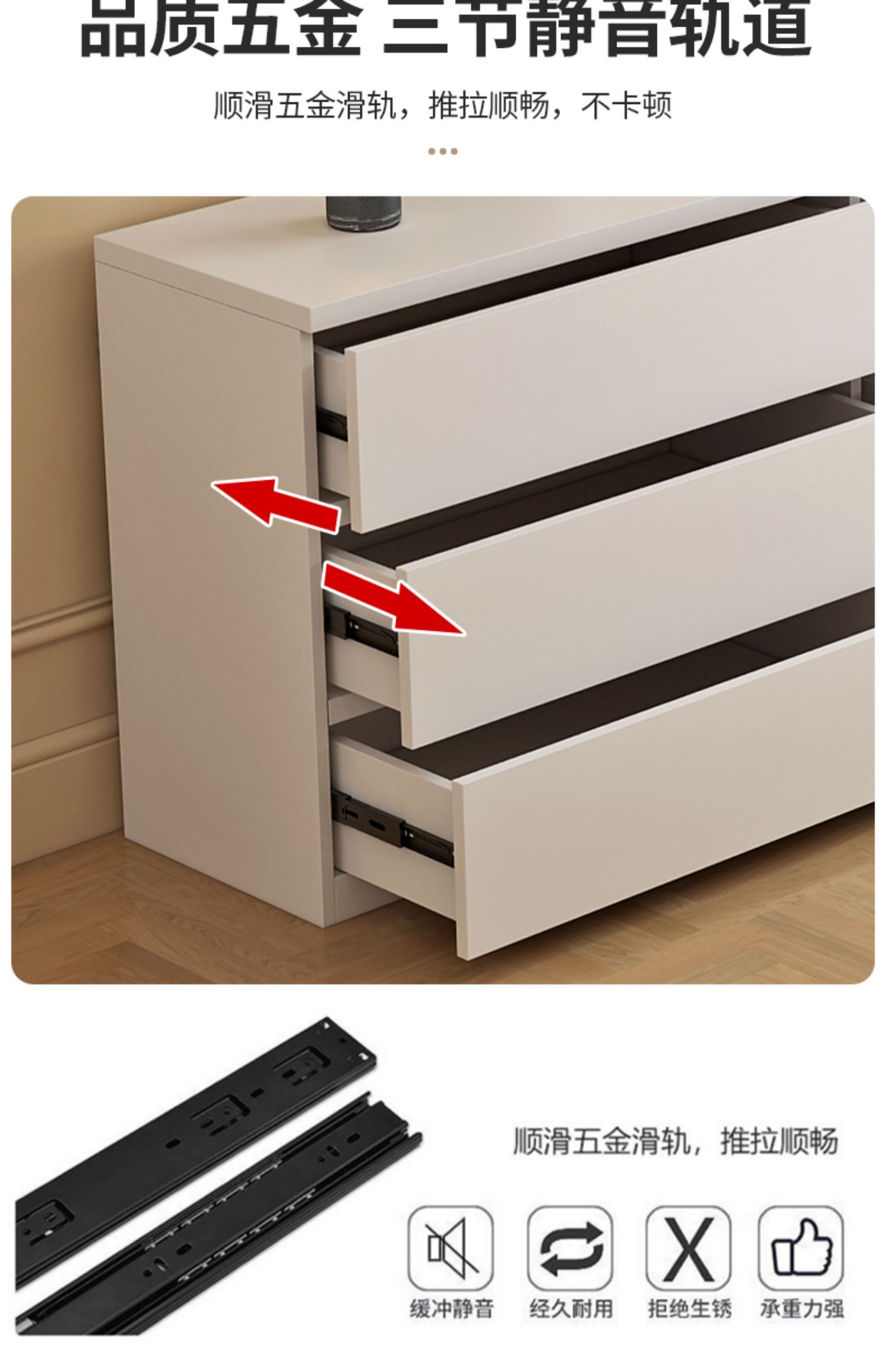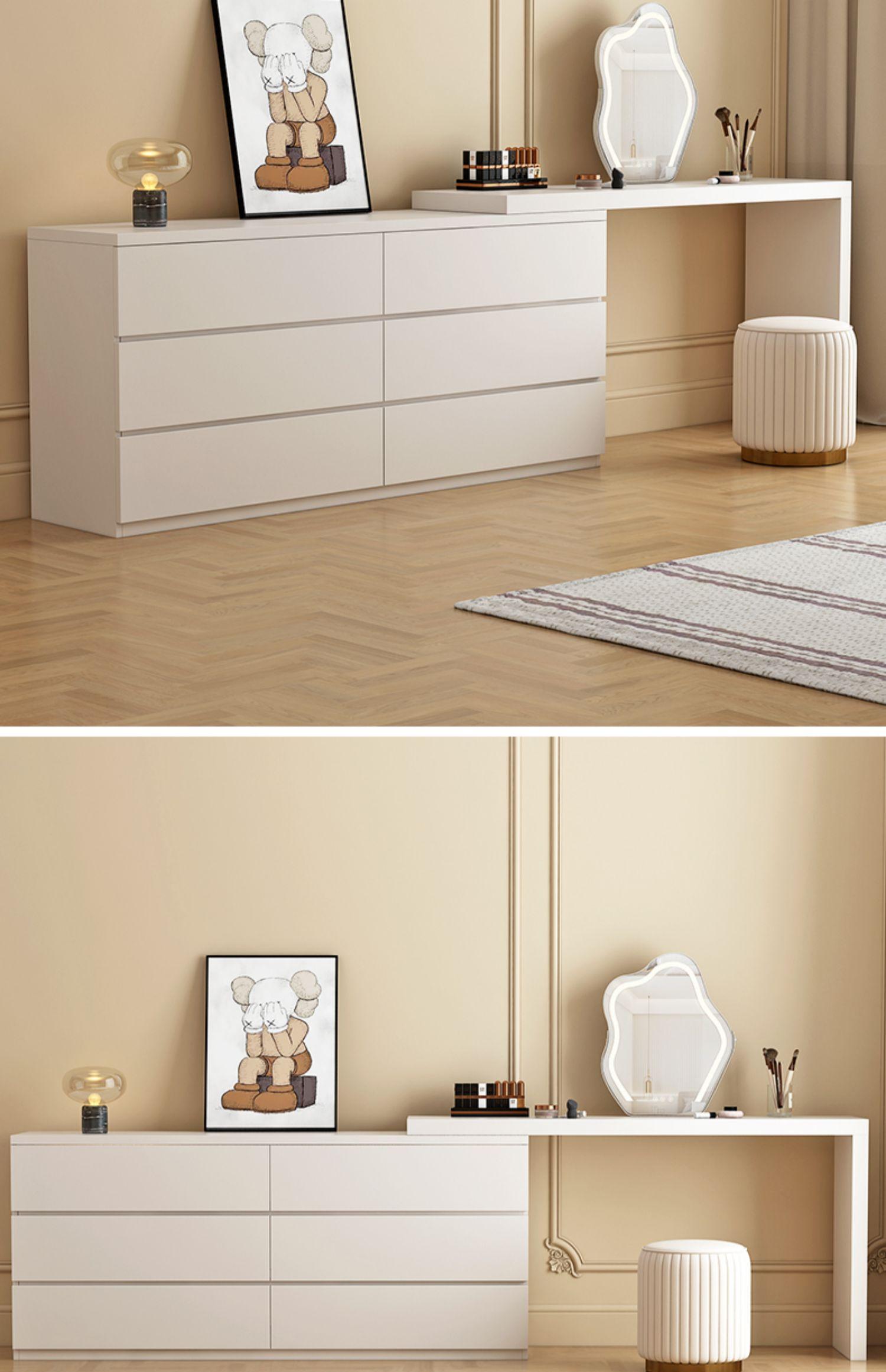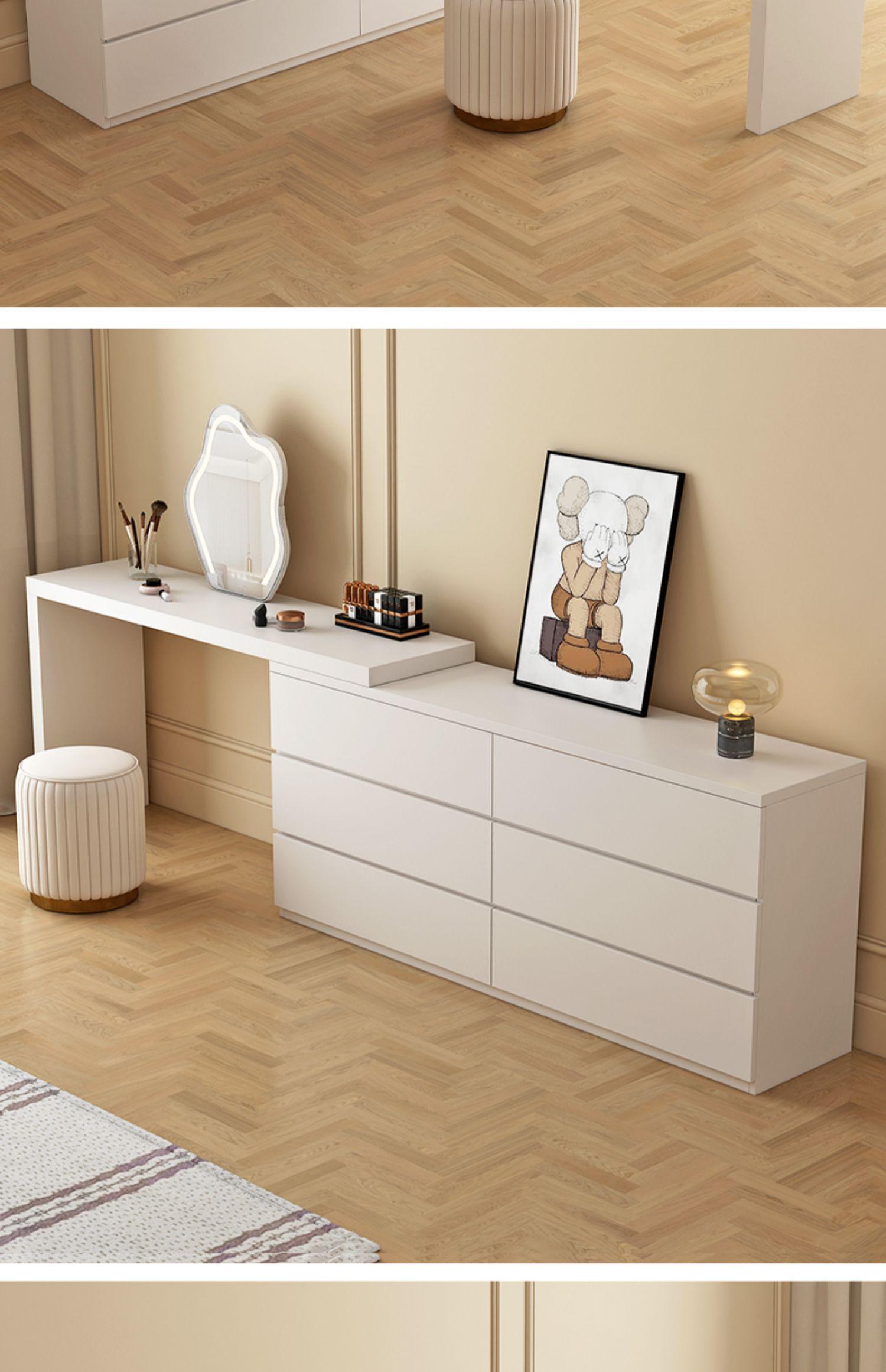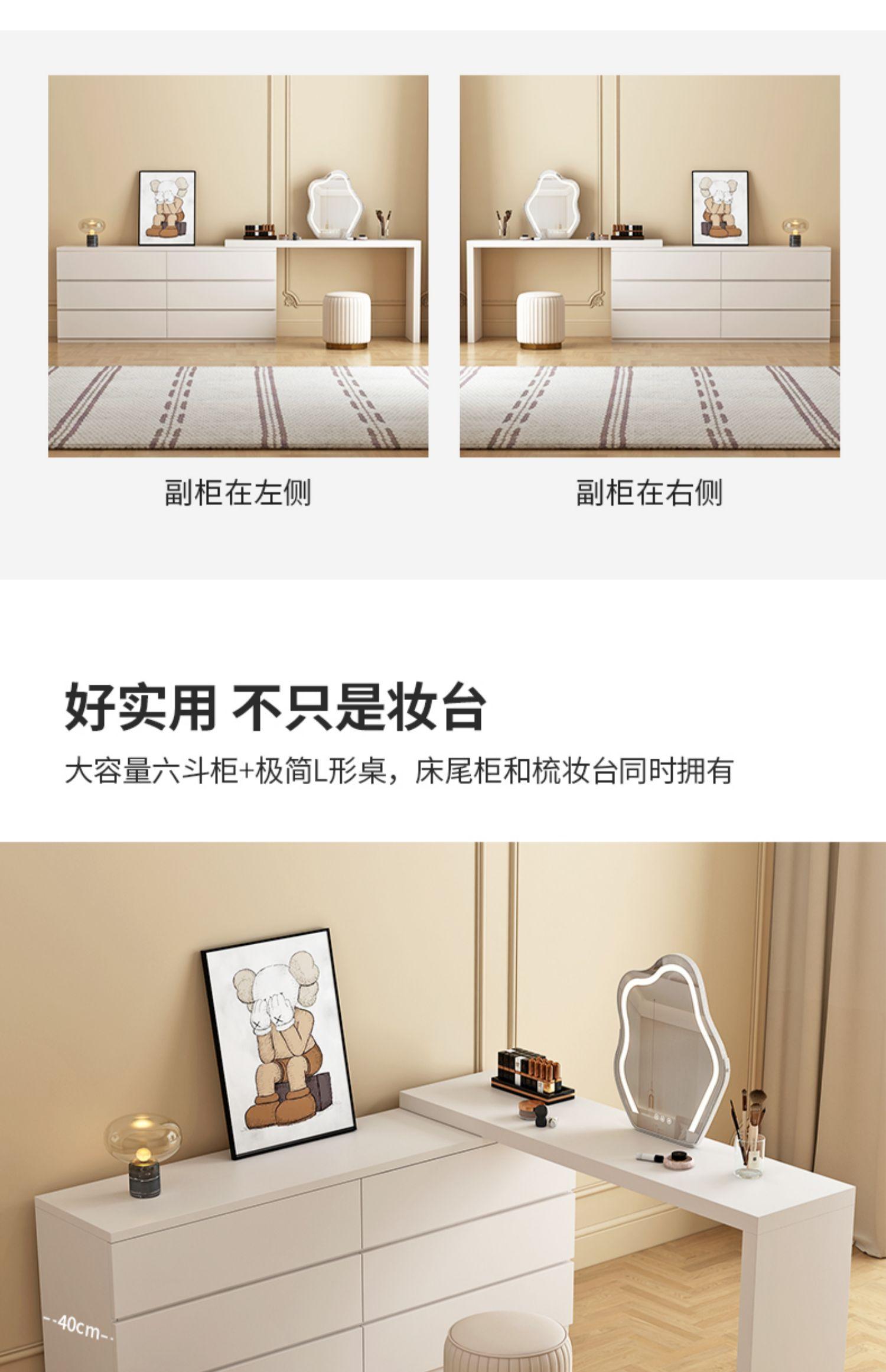 Γααααγ80cm warm white six-drawer cabinet + warm white dressing table thickened 2.5cm γααααγ Γααααγ assembly γααααγ
