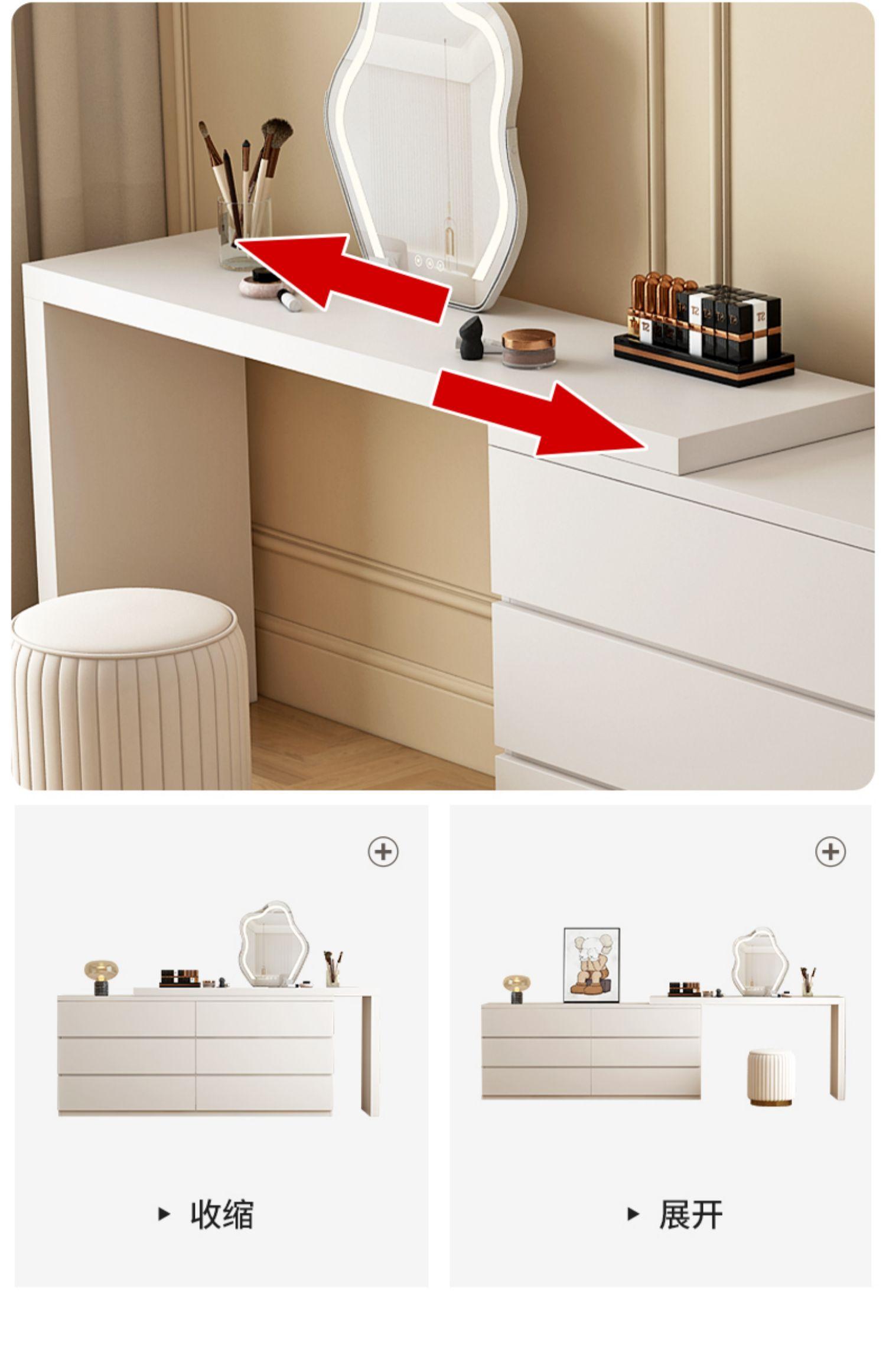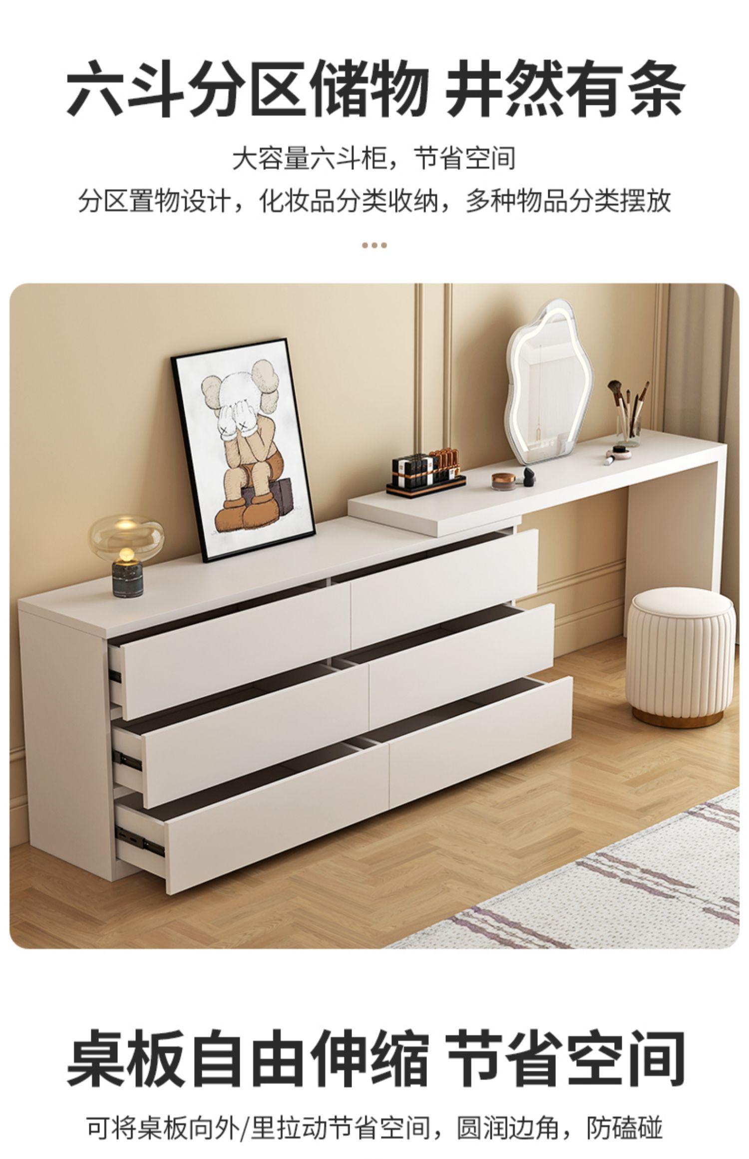 Γααααγ80cm warm white six-drawer cabinet + warm white dressing table thickened 2.5cm γααααγ, Γααααγ120cm warm ...