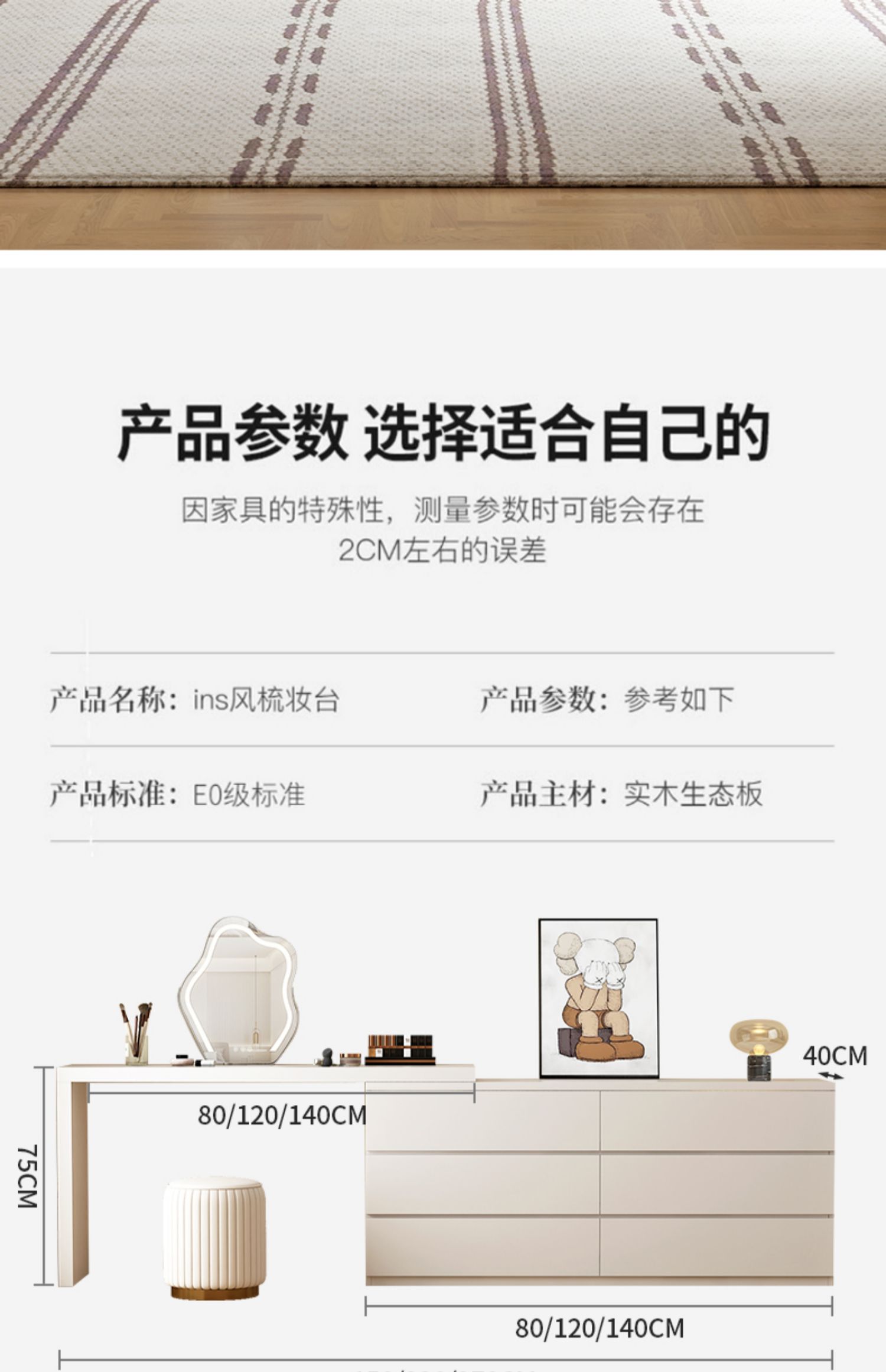 Γααααγ80cm warm white six-drawer cabinet + warm white dressing table extra thick 5cm γααααγ Γααααγ assembly γααααγ