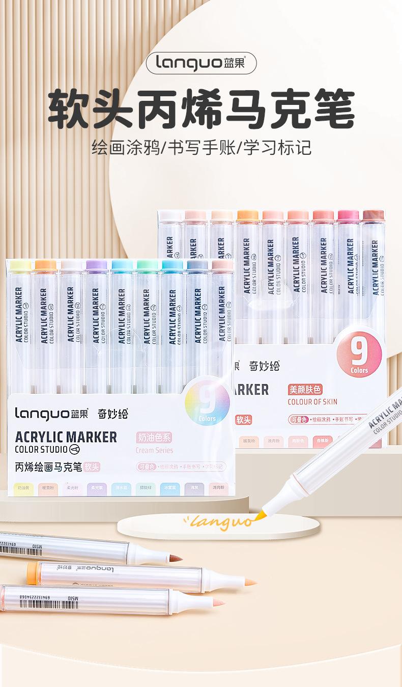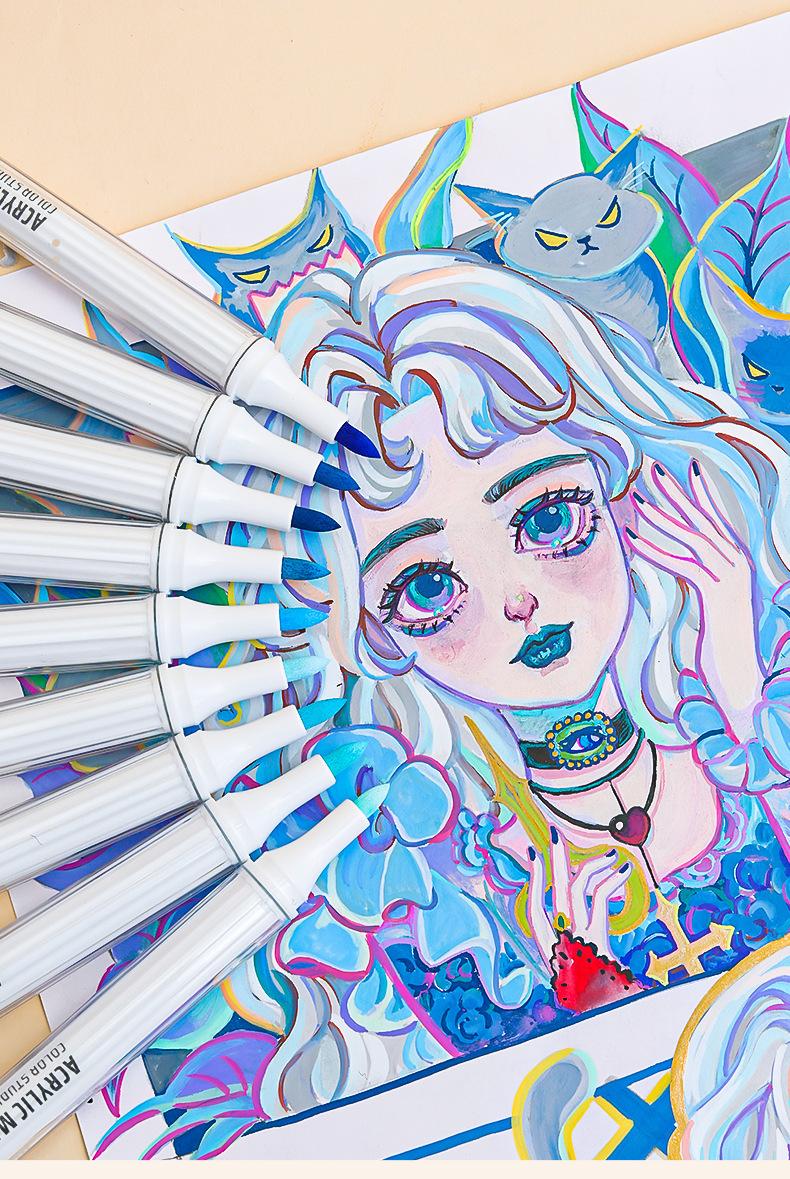 Marcador acrílico de fruta azul ozono transfronterizo, punta blanda, pintura artística, color opaco, apilable, acuarela, Amazon