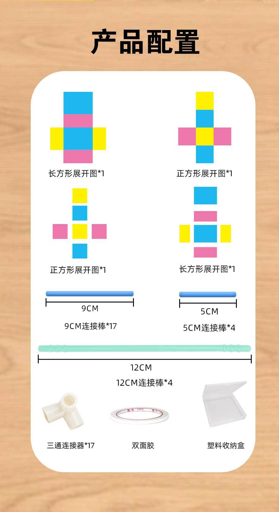 Herramientas de aprendizaje de matemáticas de quinto grado, segundo volumen, cubo, cuboide, matemáticas, exhibición desmontable, ayudas didácticas, diagrama de expansión del área de superficie
