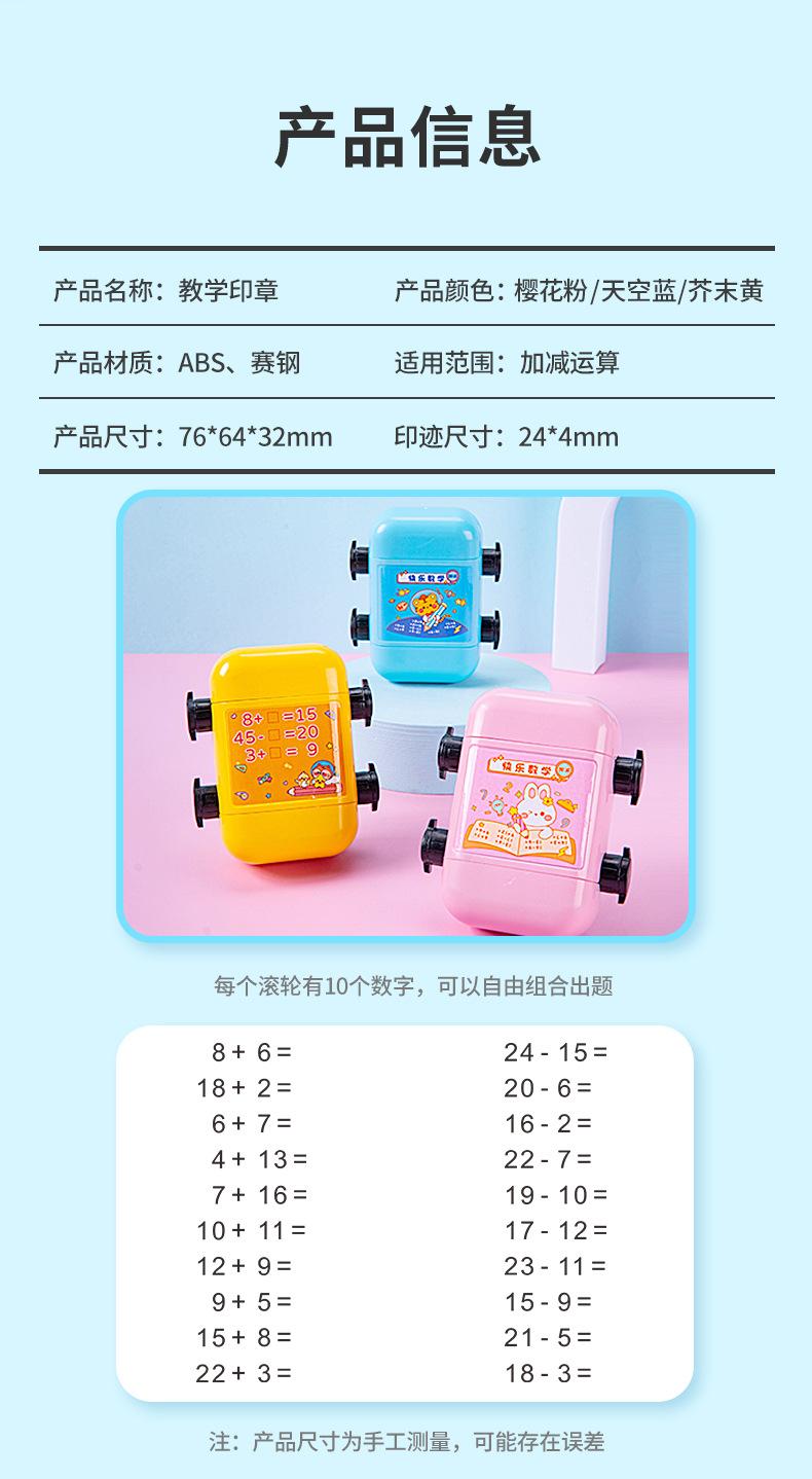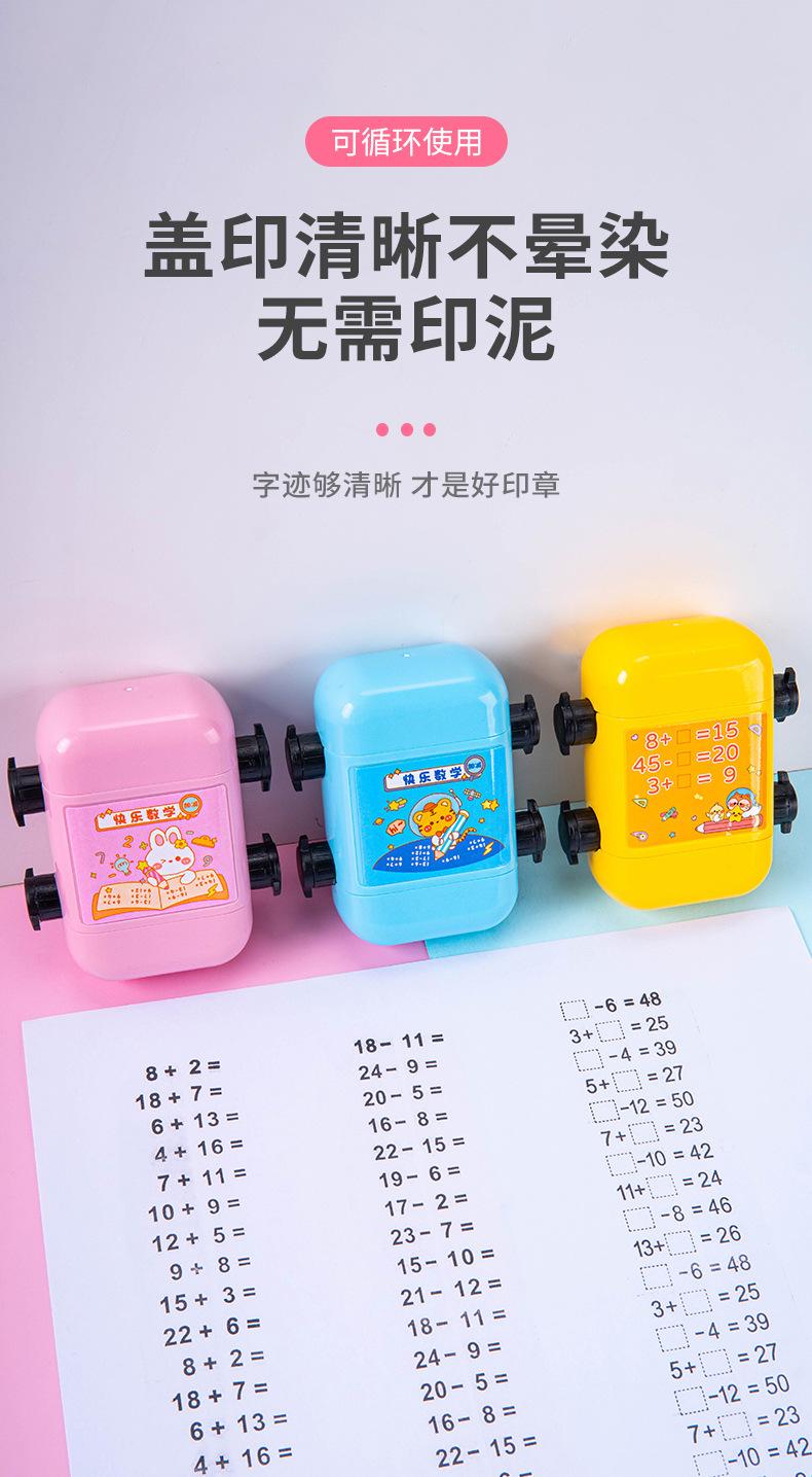 Sello aritmético de suma y resta, sello de rodillo dentro de 100, suma, resta, multiplicación y división, problema aleatorio, capítulo, sello de enseñanza para niños