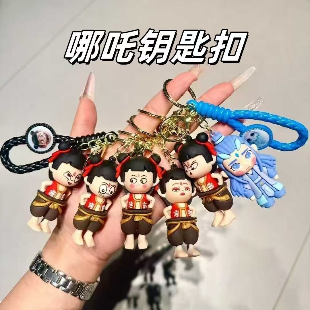 Three-dimensional nezha keychain [expression randomly distributed]