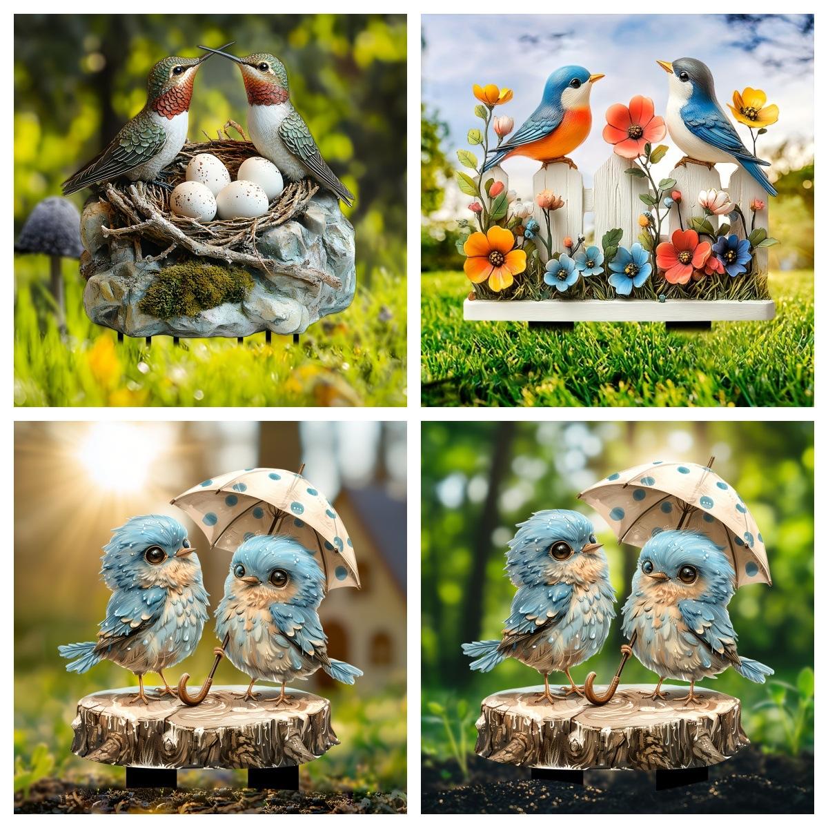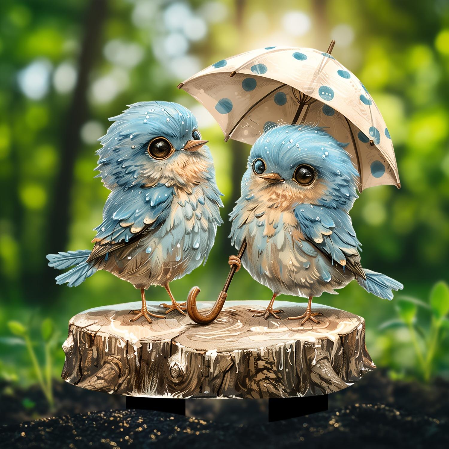 Decoración creativa transfronteriza para el Día de San Valentín, un par de pájaros, paraguas, valla de jardín al aire libre, patio, accesorios de decoración