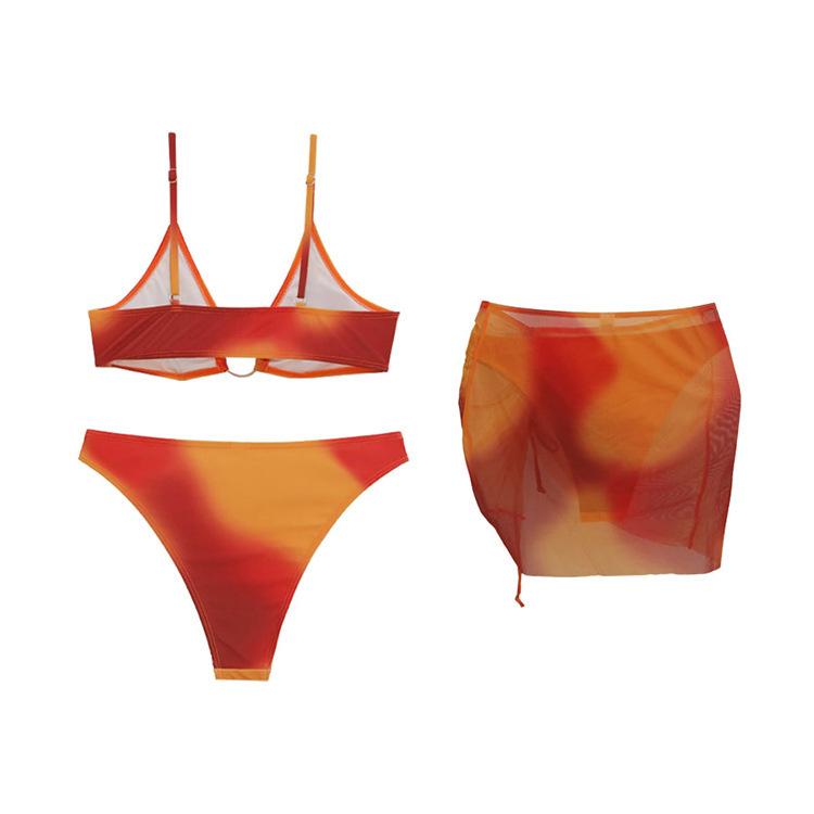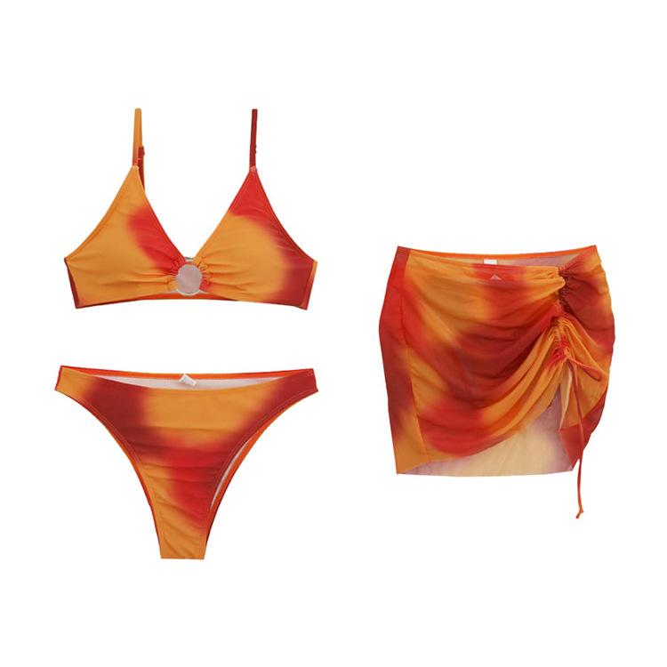 Bikini transfronterizo Traje de baño dividido de comercio exterior Traje de baño sexy degradado para mujer Bikini de tres piezas Falda corta de tres puntos