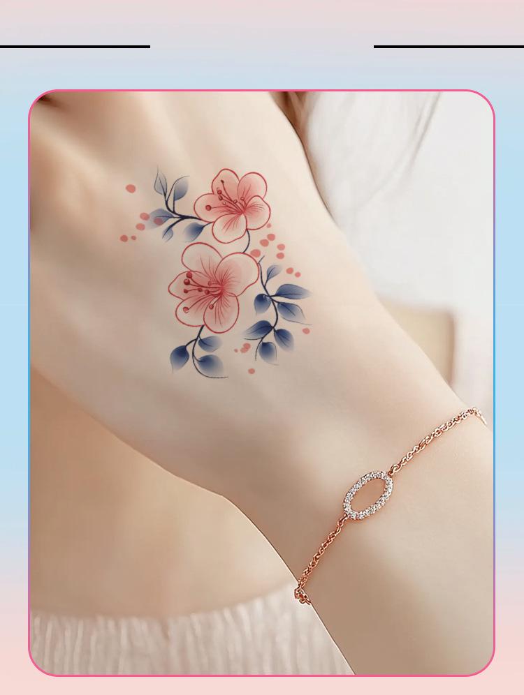 Hermosa pegatina de tatuaje de color flor de cerezo, resistente al agua, de larga duración, no reflectante, para brazo, con sensación avanzada, simulación de pintura a color, nueva pegatina