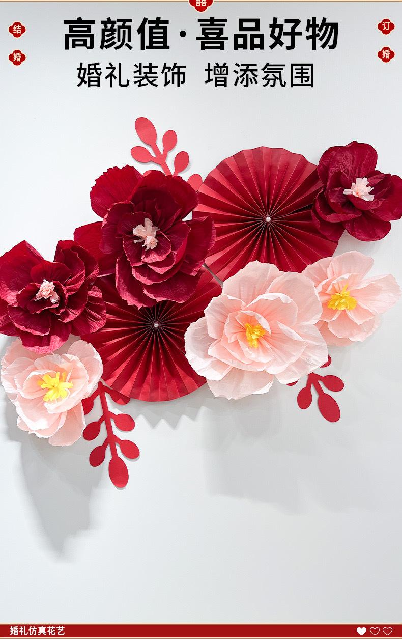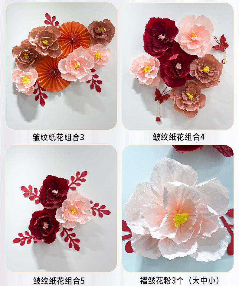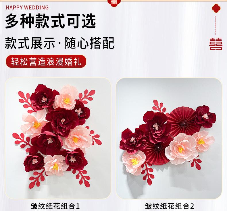 Decoración floral plisada para sala de bodas, compromiso, casa nueva, vestido de boda, fiesta de bodas, fondo de pared, suministros para arreglos florales de papel tridimensionales