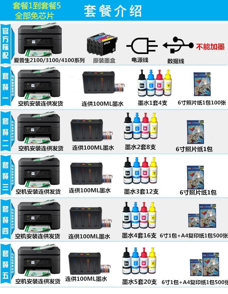 Official standard configuration (cannot add ink), Package 1 (cycled with ink), Package 2 (cycled with ink), Pa...