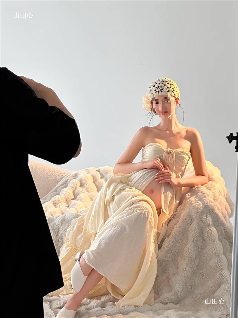 Nuevo estudio fotográfico, ropa de maternidad, sala de flores, vestido pequeño y fresco, ropa para fotos de barriga de mamá embarazada pura en casa