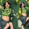 Green knitted tube top + white pleated skirt + white knitted foot socks