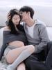 Gray hollow sweater + black satin suspenders + 013 black underwear + black light board mid-calf socks