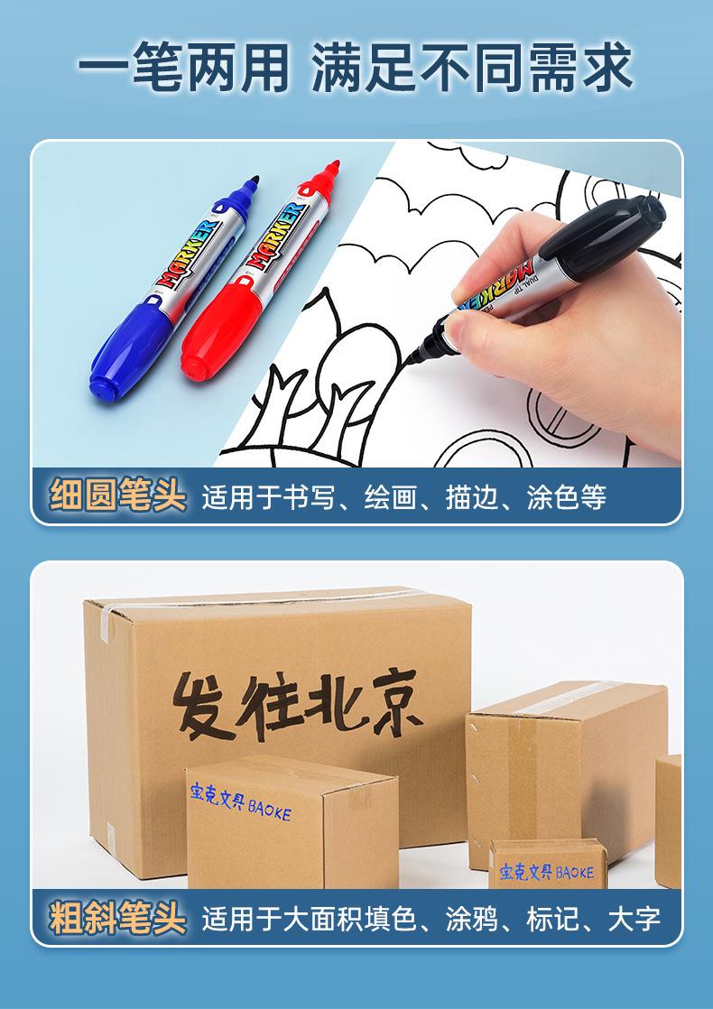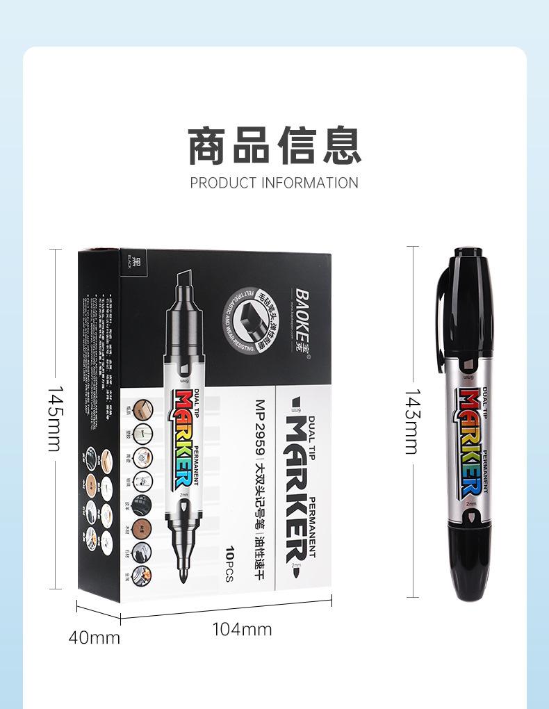 Compra Marcador Baoke MP2959 pluma grande de doble punta aceitosa de secado rápido 12 colores tinta recargable resistente al agua caja de bolígrafos punta aceitosa gruesa al por mayor en Joom.pro