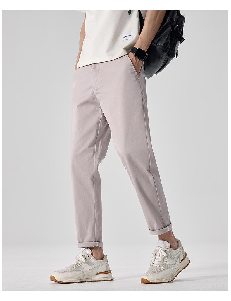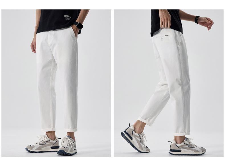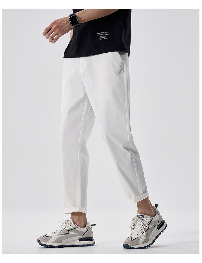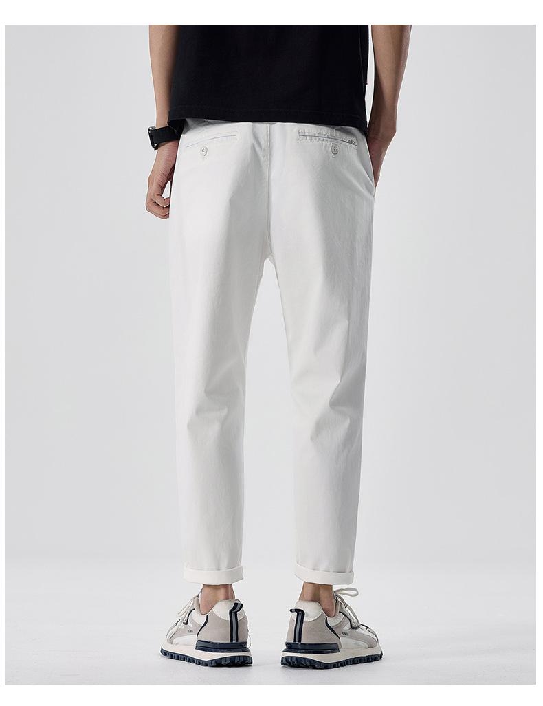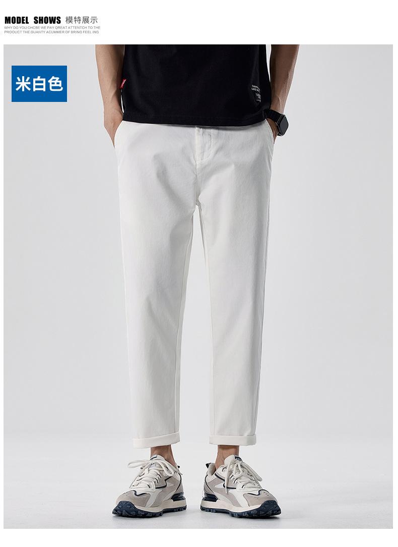 Pantalones casuales de algodón puro para hombre, primavera y verano, nuevos pantalones cortos rectos ajustados, elásticos, casuales, combinables, color blanco arroz para hombre.