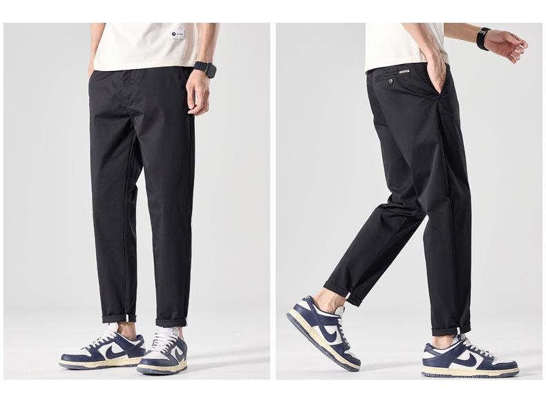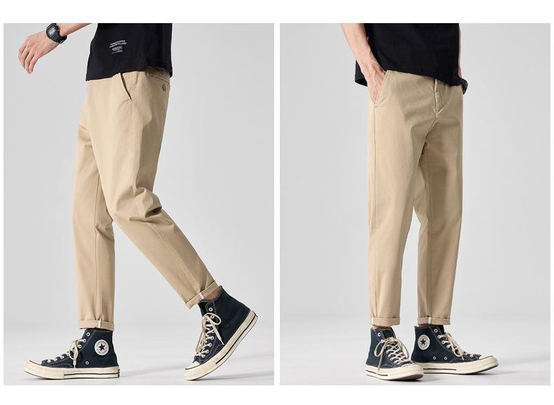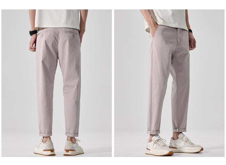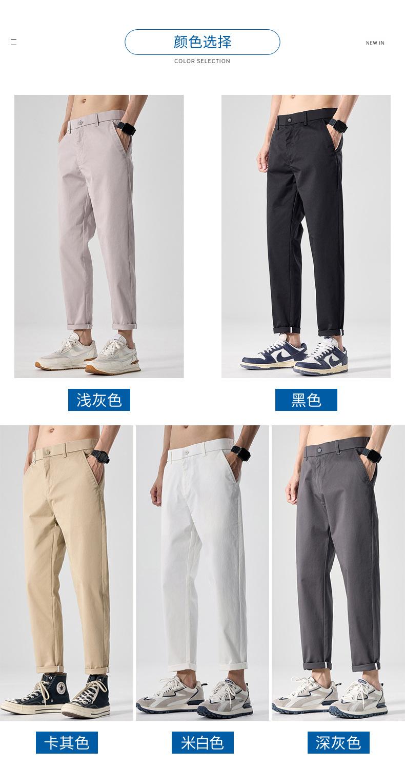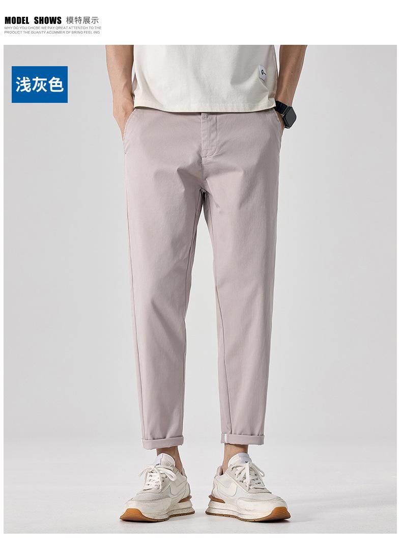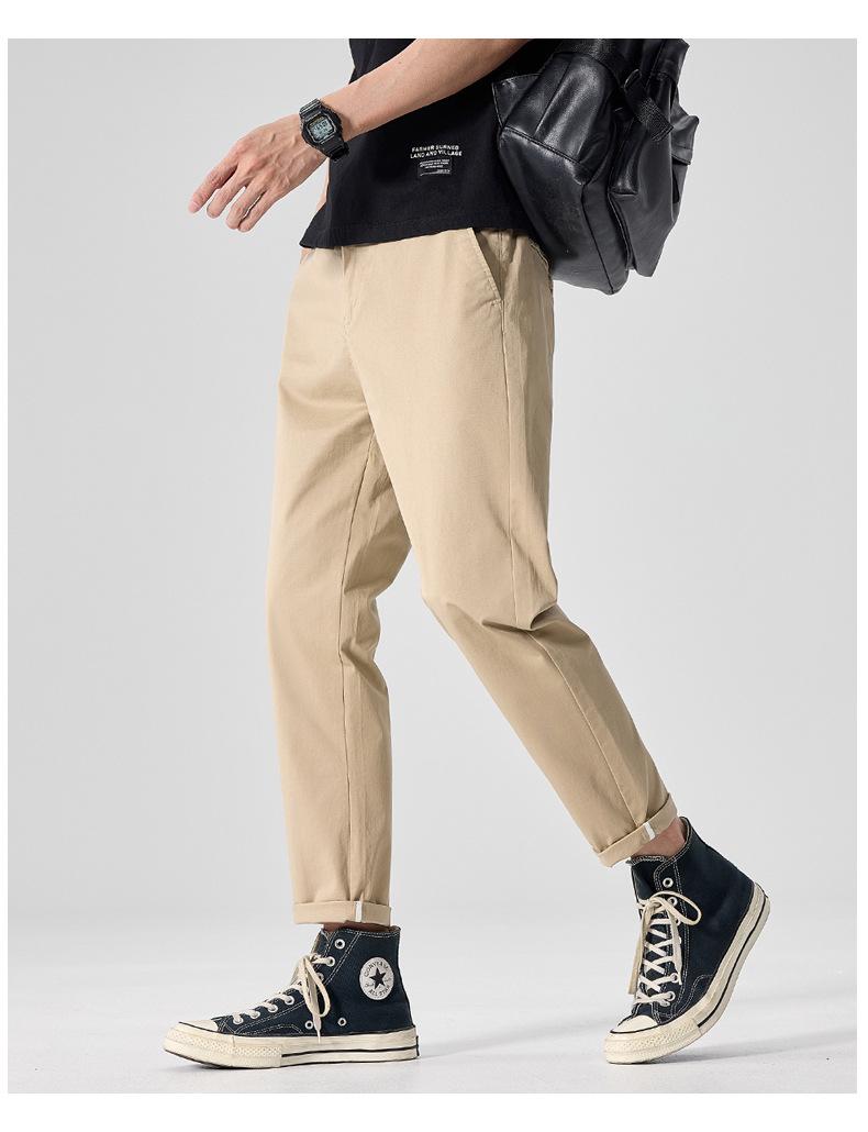 Pantalones casuales de algodón puro para hombre, primavera y verano, nuevos pantalones cortos rectos ajustados, elásticos, casuales, combinables, color blanco arroz para hombre.