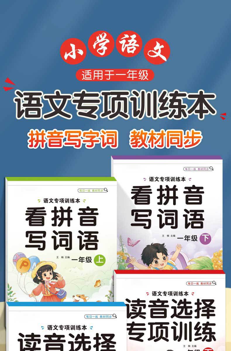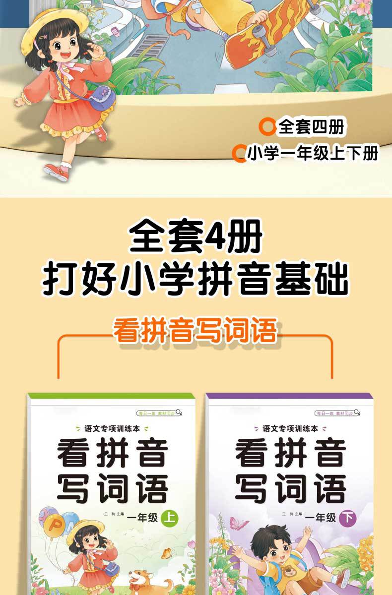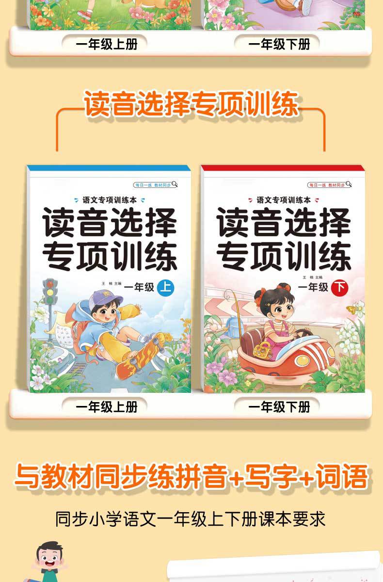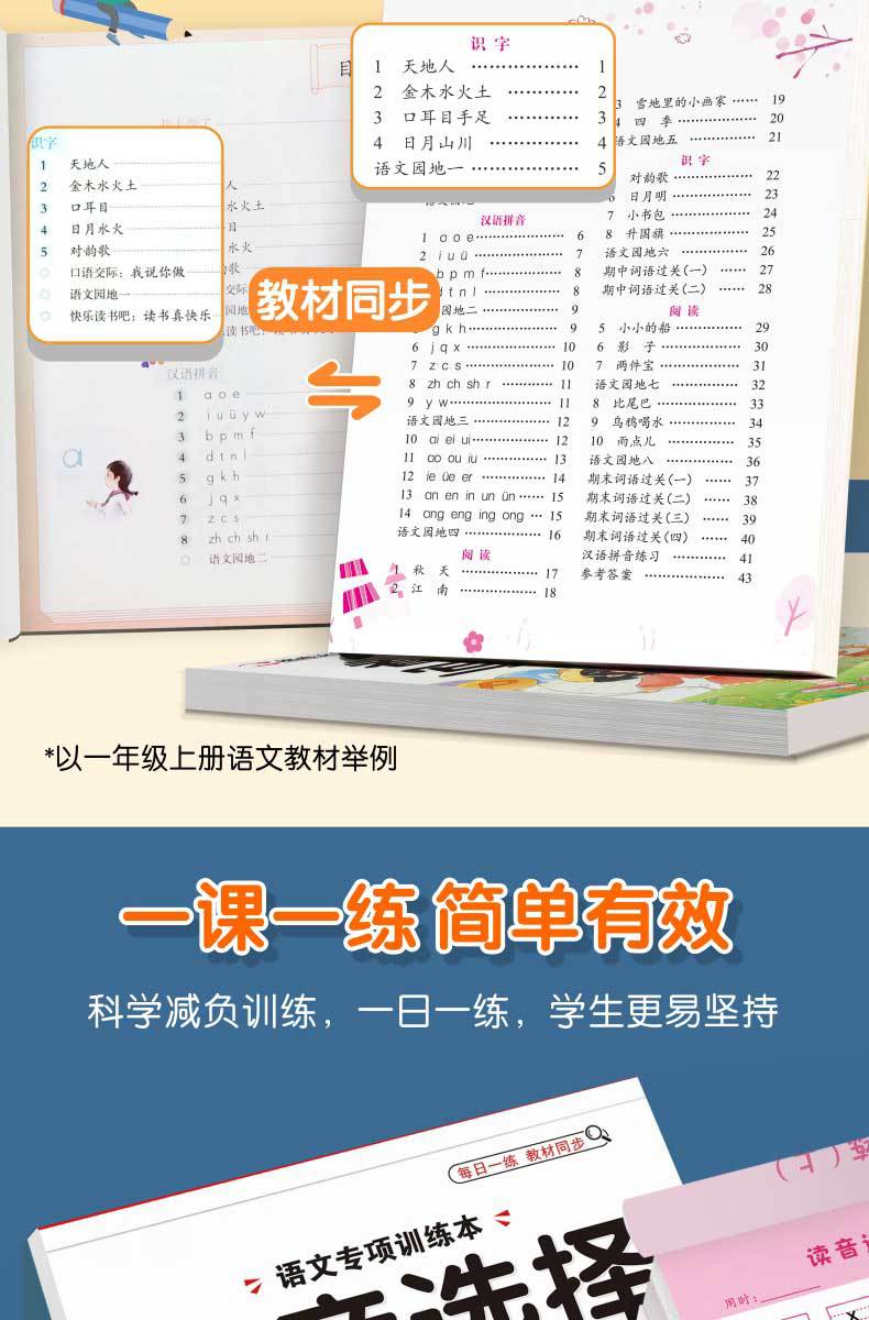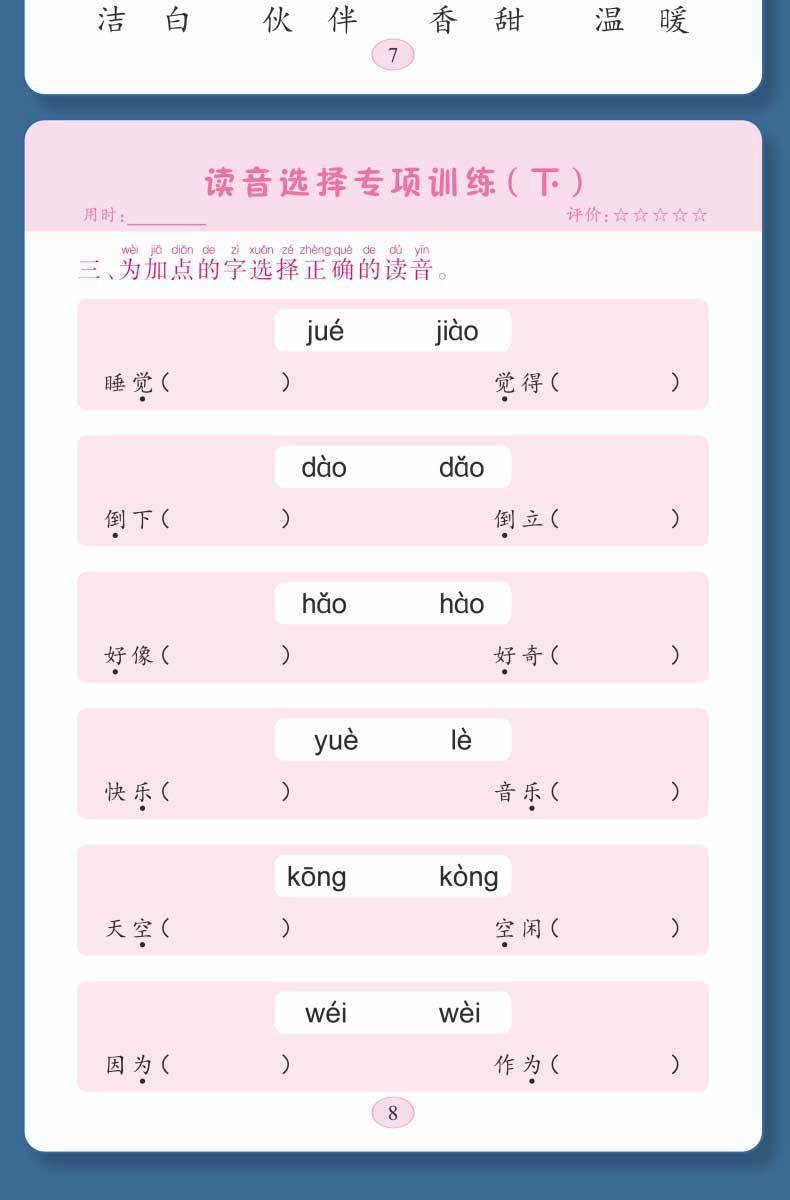 Libro de entrenamiento especial en chino: Mira las palabras de escritura en pinyin, selección de pronunciación, entrenamiento especial, entrenamiento fonético en pinyin de primer grado