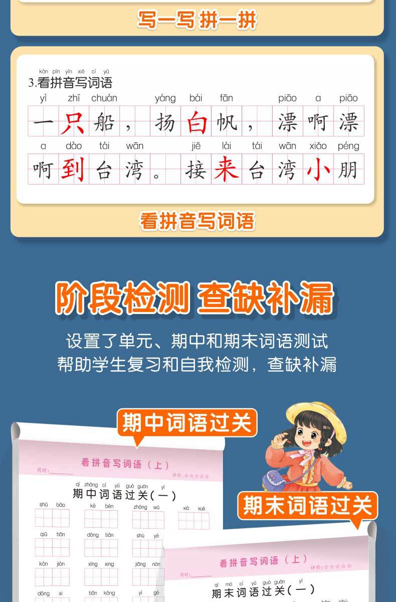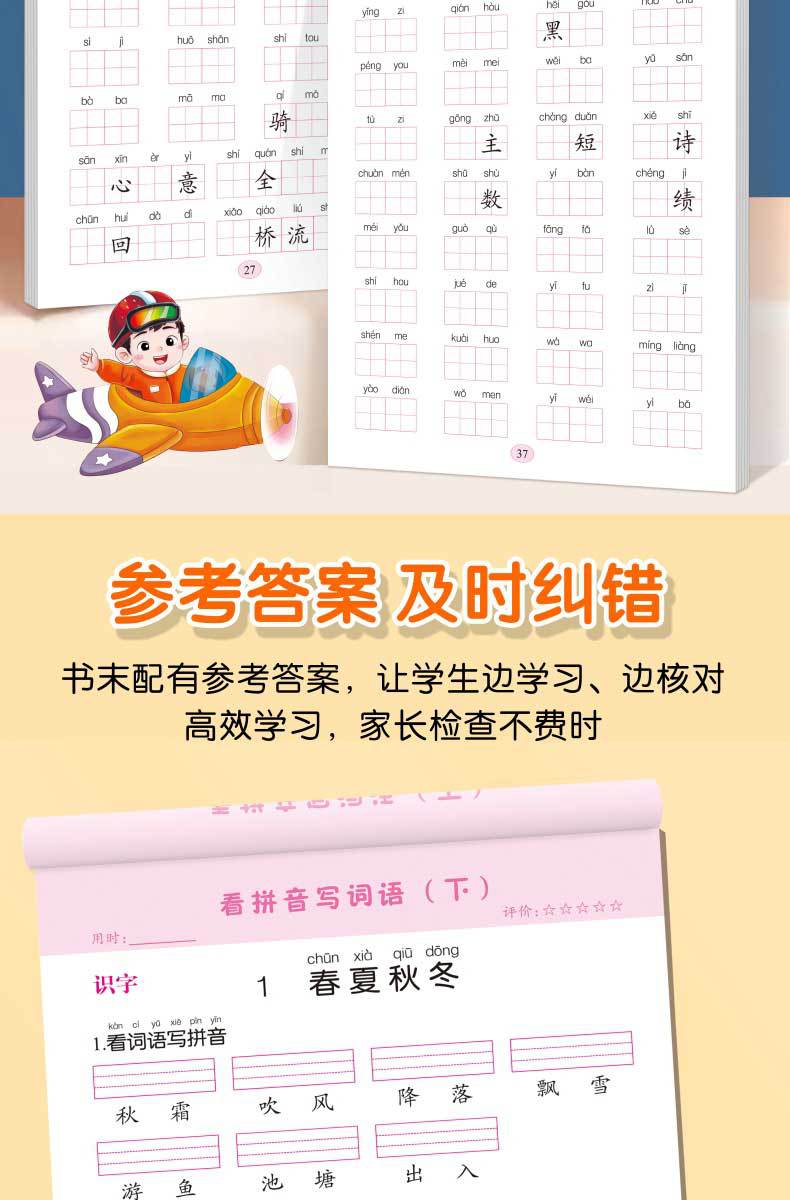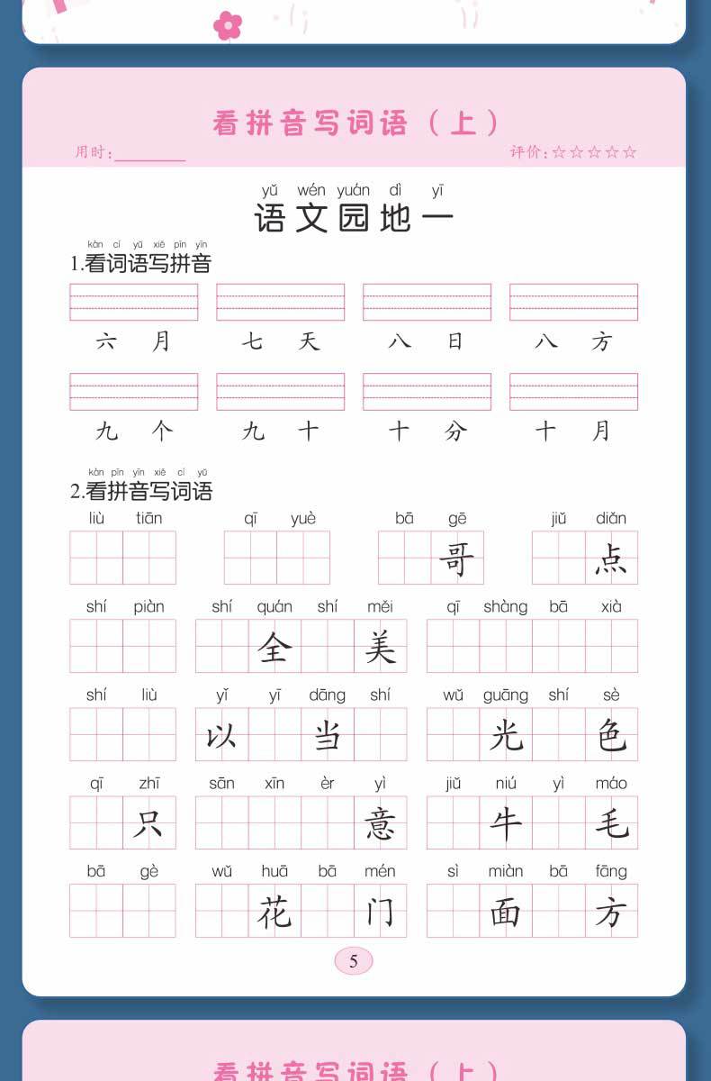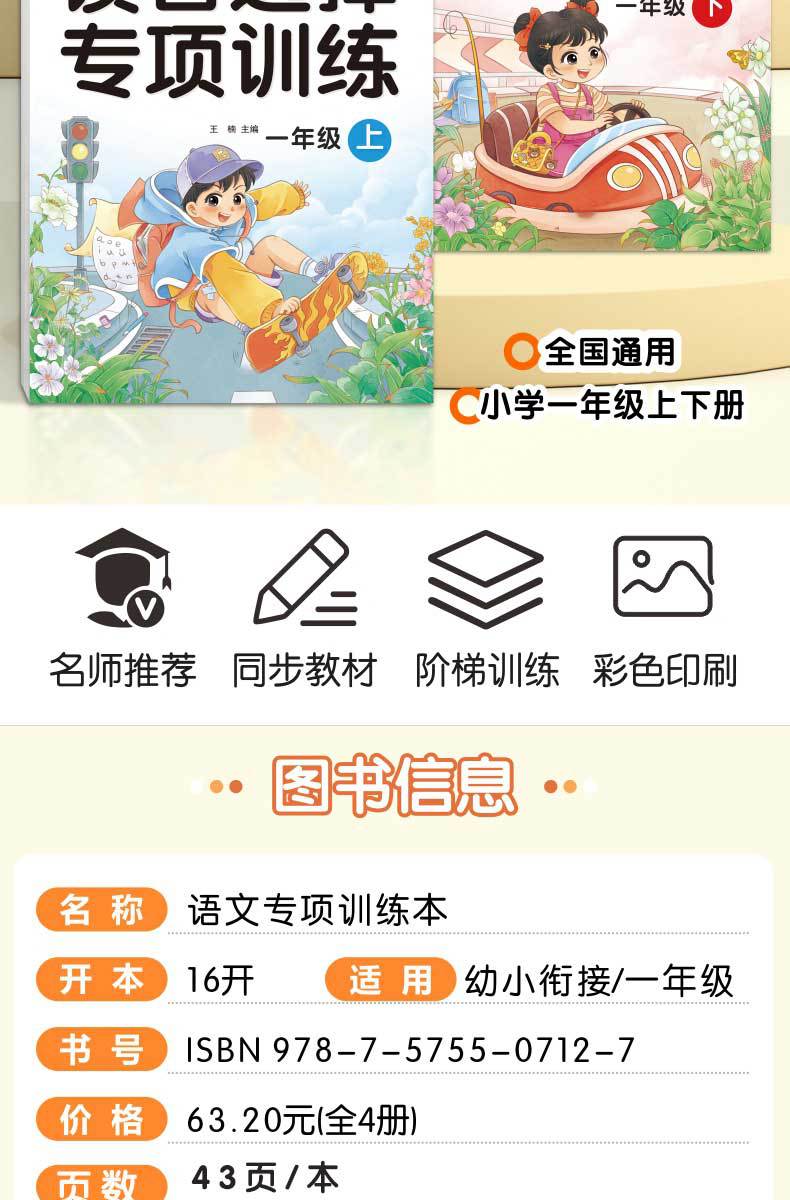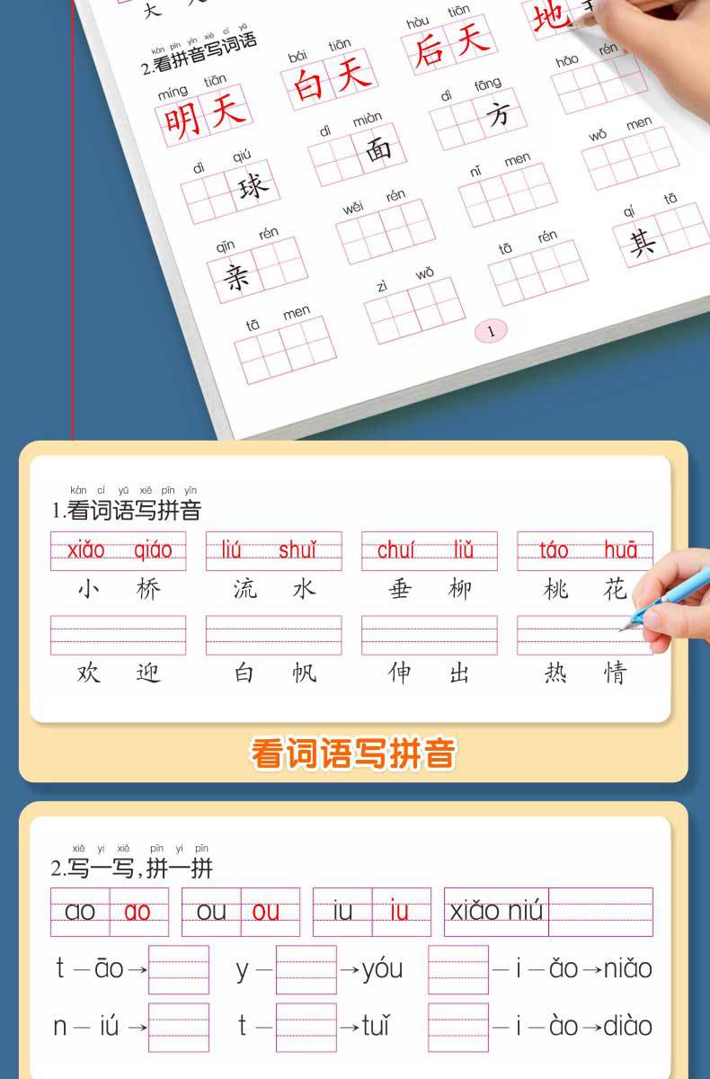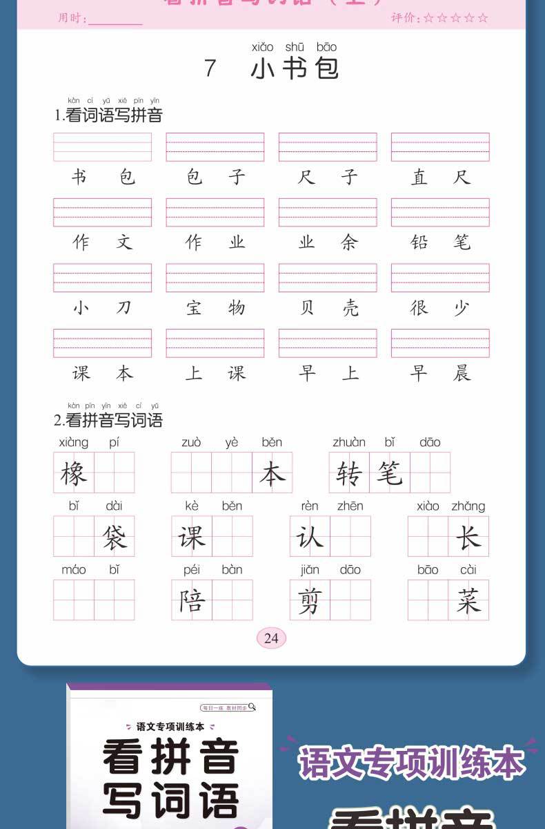 Libro de entrenamiento especial en chino: Mira las palabras de escritura en pinyin, selección de pronunciación, entrenamiento especial, entrenamiento fonético en pinyin de primer grado