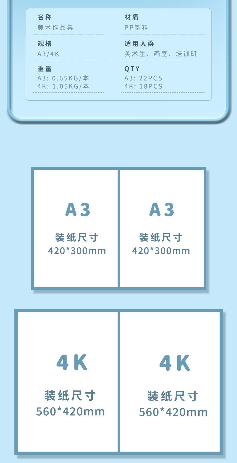4k sky blue 30 pages front and back can hold 60 sheets (paper size 42*56cm), A3 sky blue 30 pages front and ba...