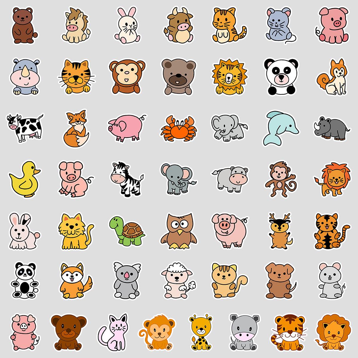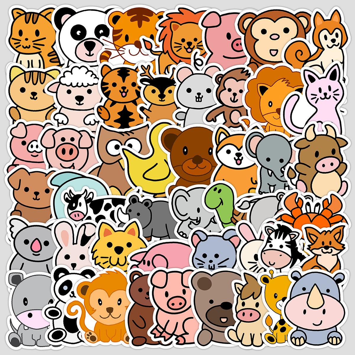 50 pegatinas de grafiti de animales pequeños de dibujos animados, creativas y lindas, para tazas de agua, maletas, pegatinas decorativas impermeables, venta al por mayor