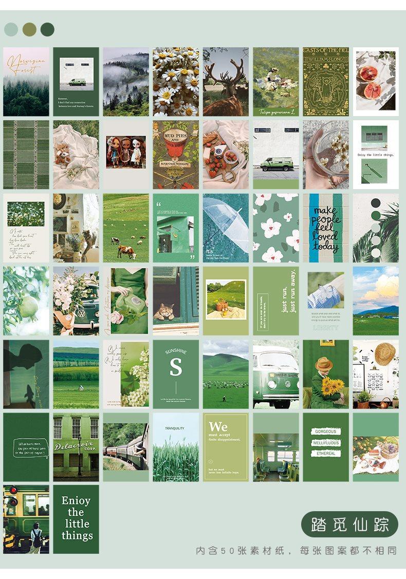 50 piezas de hermosa colección cuenta de mano y pegatina de papel pequeño libro arte paisaje pintura al óleo decoración de cuenta de mano material de bricolaje papel