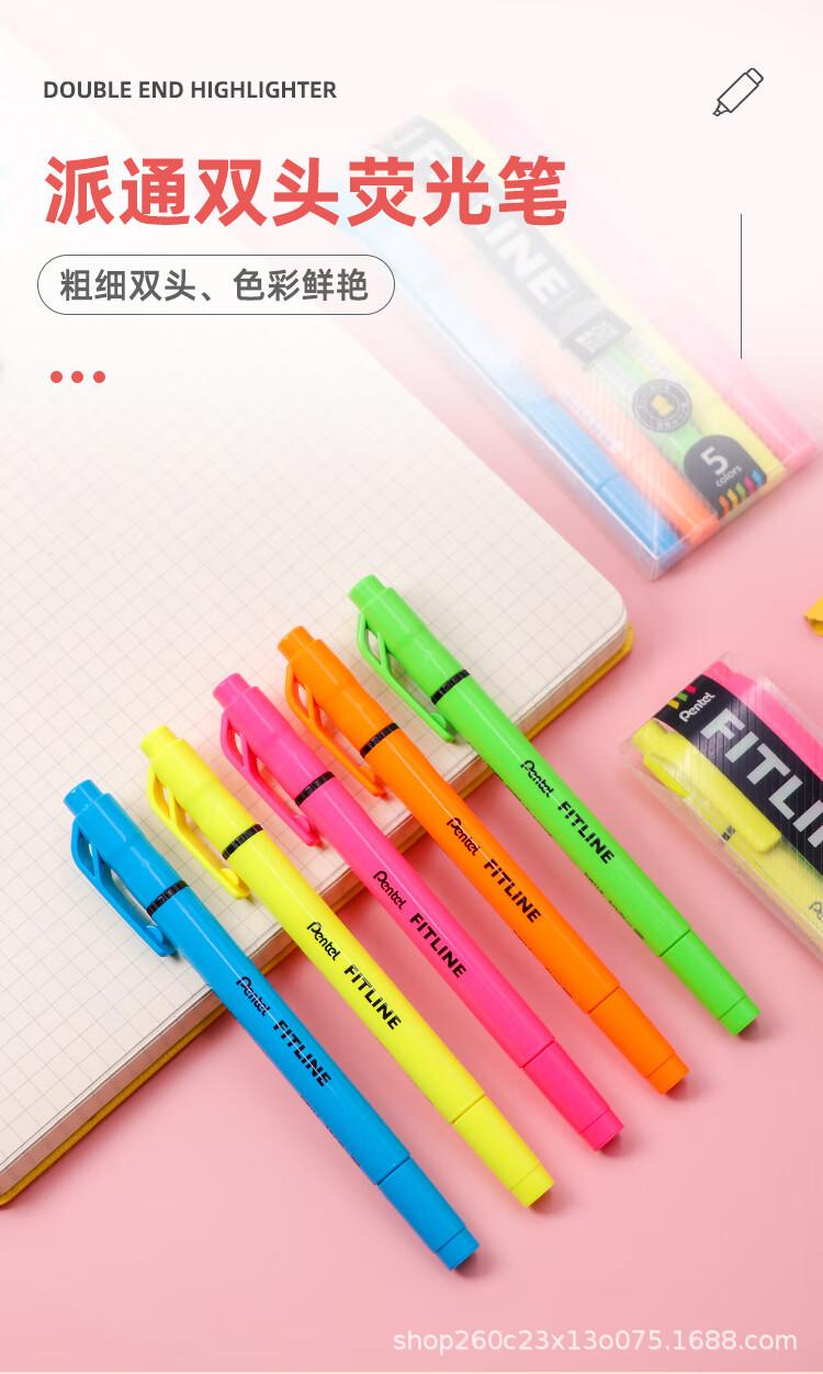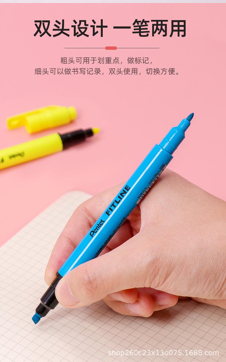 Rotulador fluorescente de doble cabezal Pentel para estudiantes, marcador para resaltar, SLW11