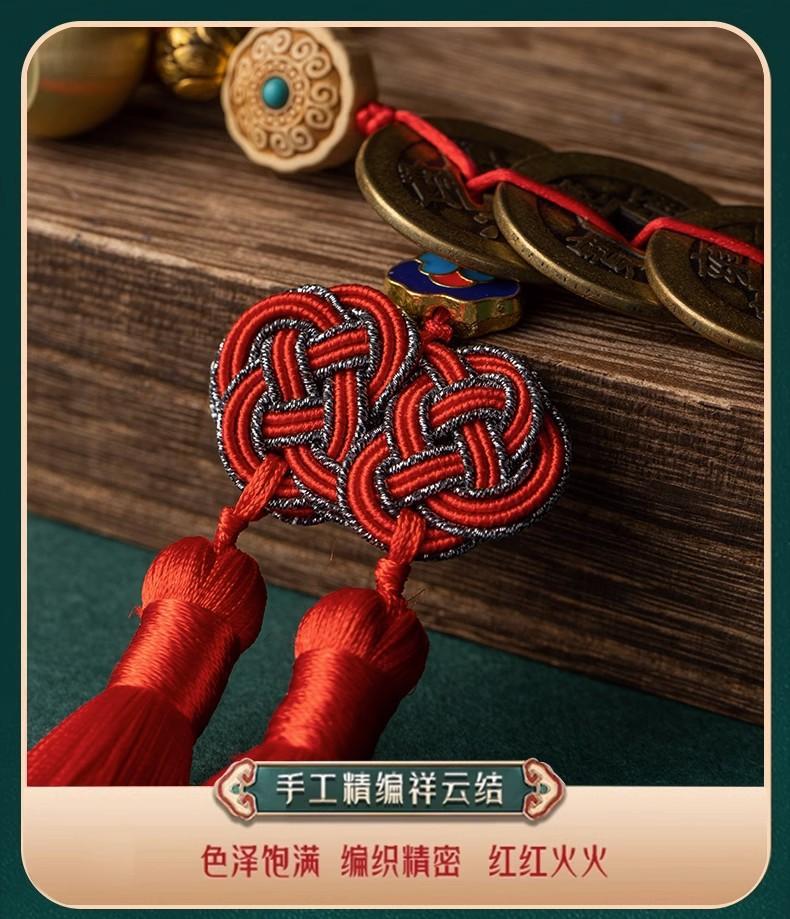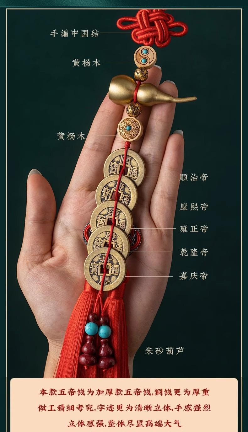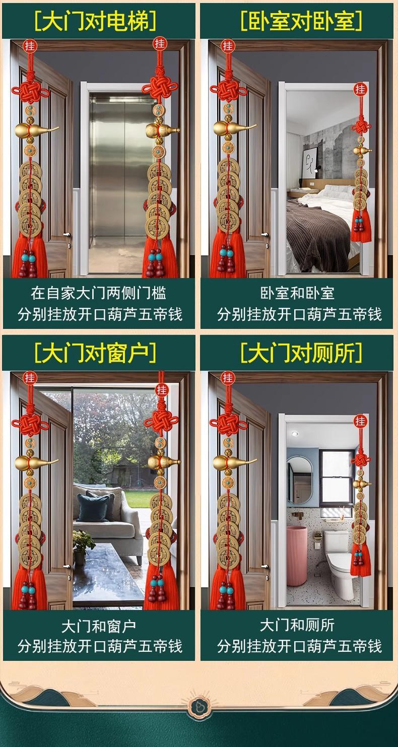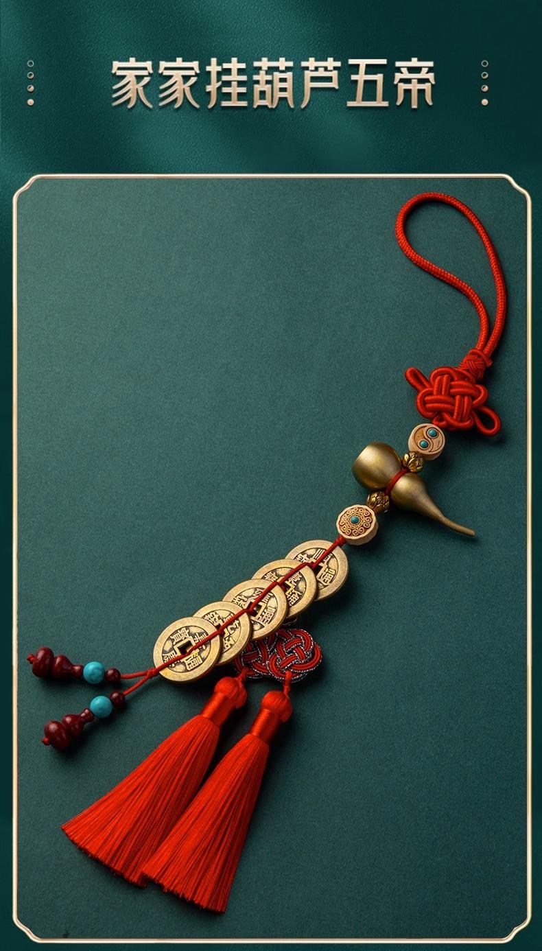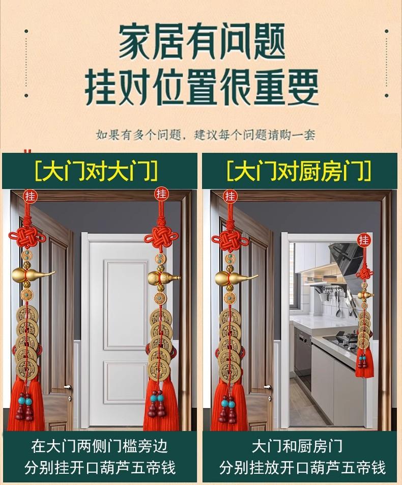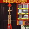 Colgante de nudo chino auspicioso de calabaza de cobre de los Cinco Emperadores, puerta a puerta, moneda de cobre con umbral de presión de cinabrio genuino abierto para el hogar