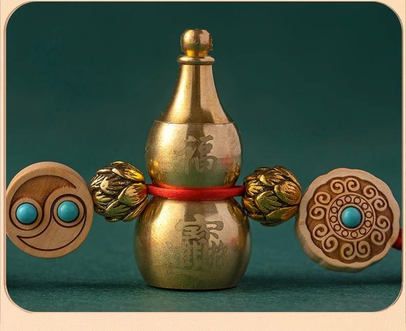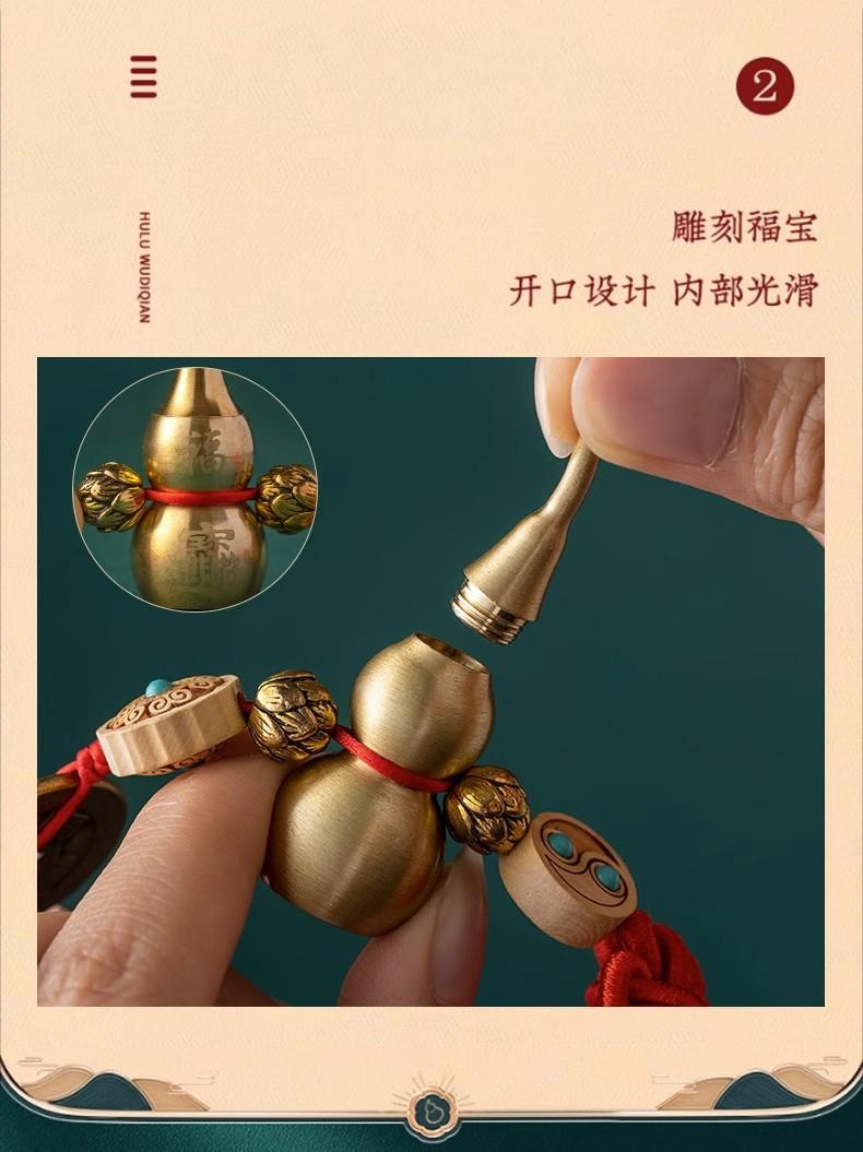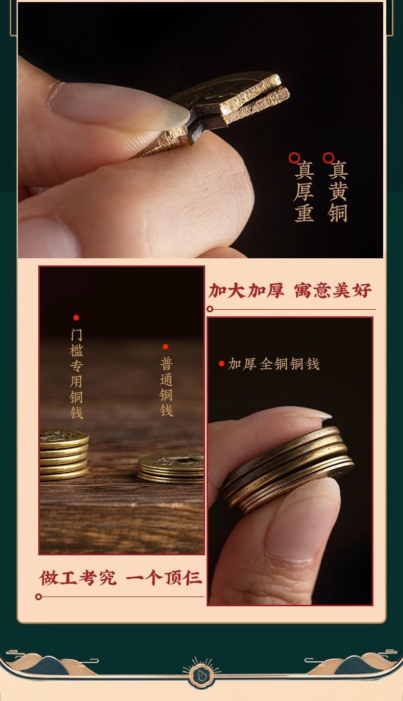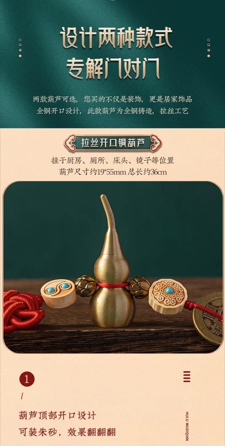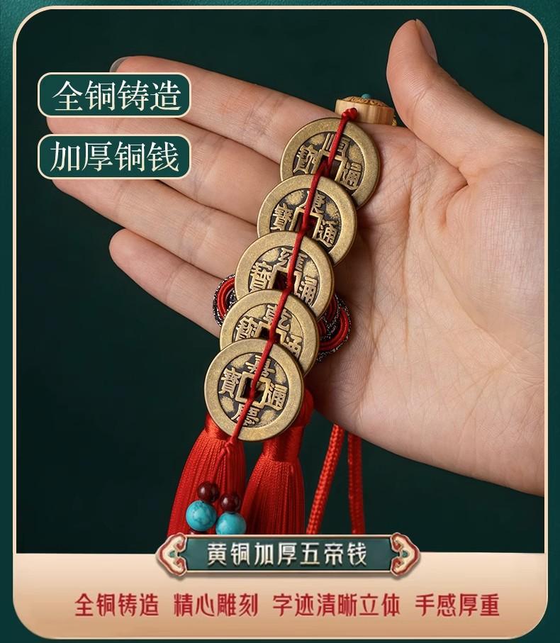 Colgante de nudo chino auspicioso de calabaza de cobre de los Cinco Emperadores, puerta a puerta, moneda de cobre con umbral de presión de cinabrio genuino abierto para el hogar