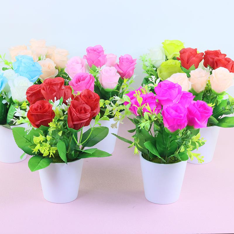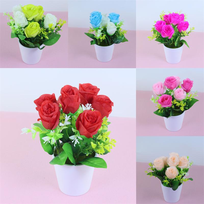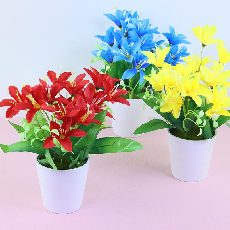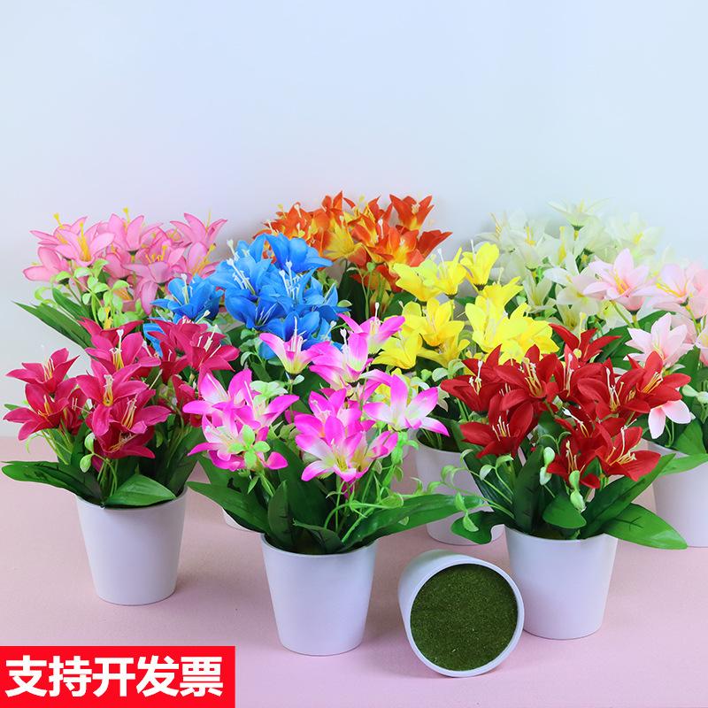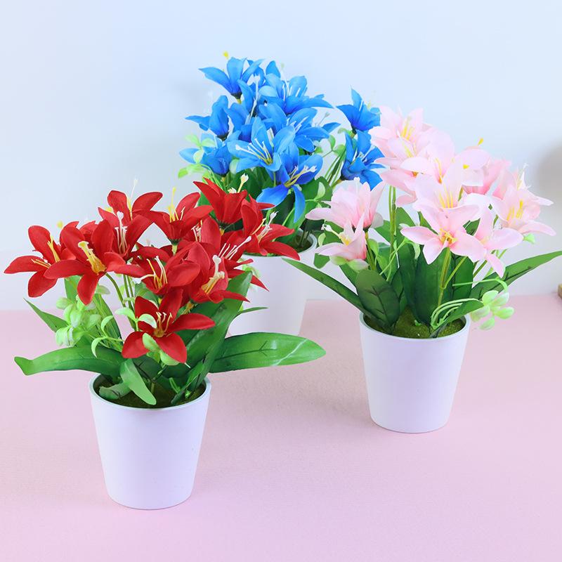 Pequeño lirio artificial para el hogar, planta en maceta, adorno para mesa de comedor de interior, traje de flores, tela de seda, decoración de bonsái de plástico.