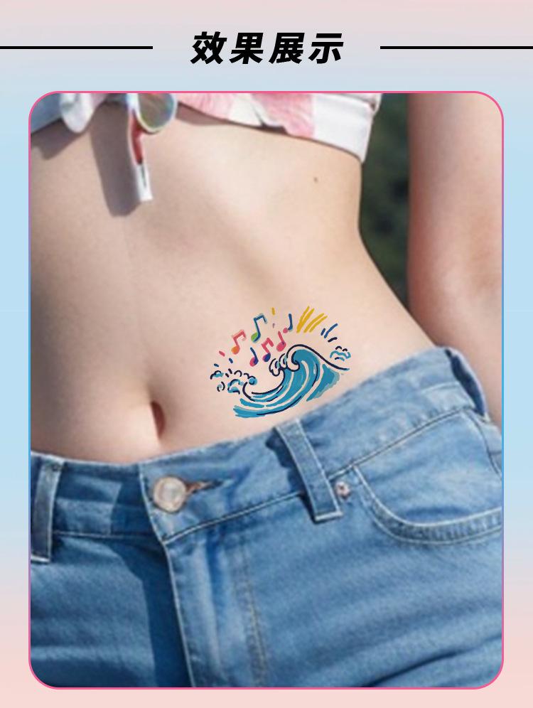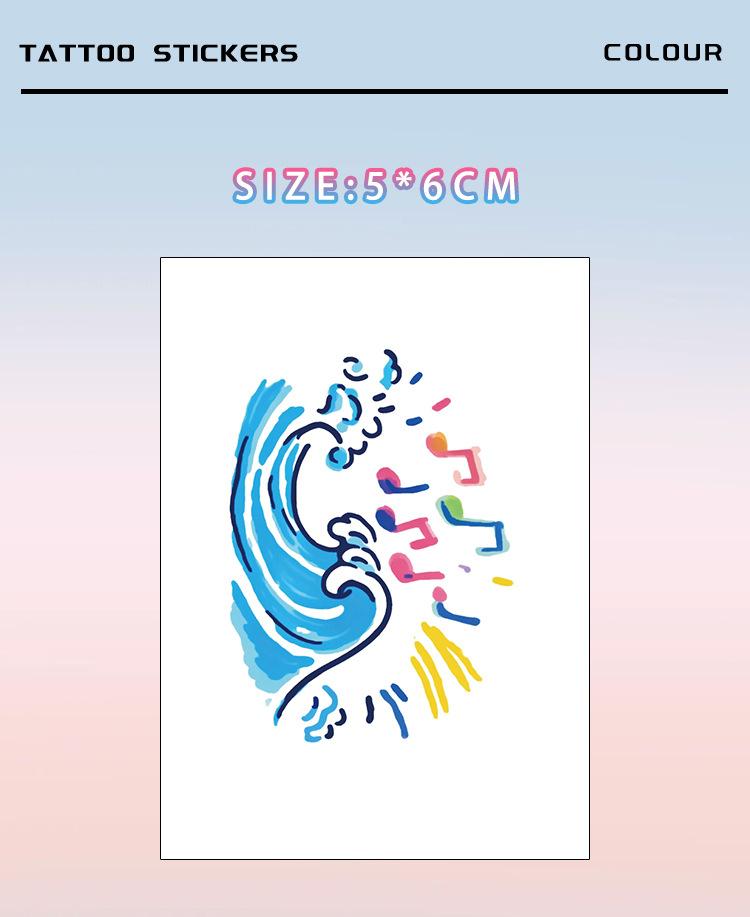 Pegatinas de tatuaje de color de onda de nota, resistentes al agua, duraderas, no reflectantes, para brazo, con sensación avanzada de color, simulación de pintura, nuevas pegatinas