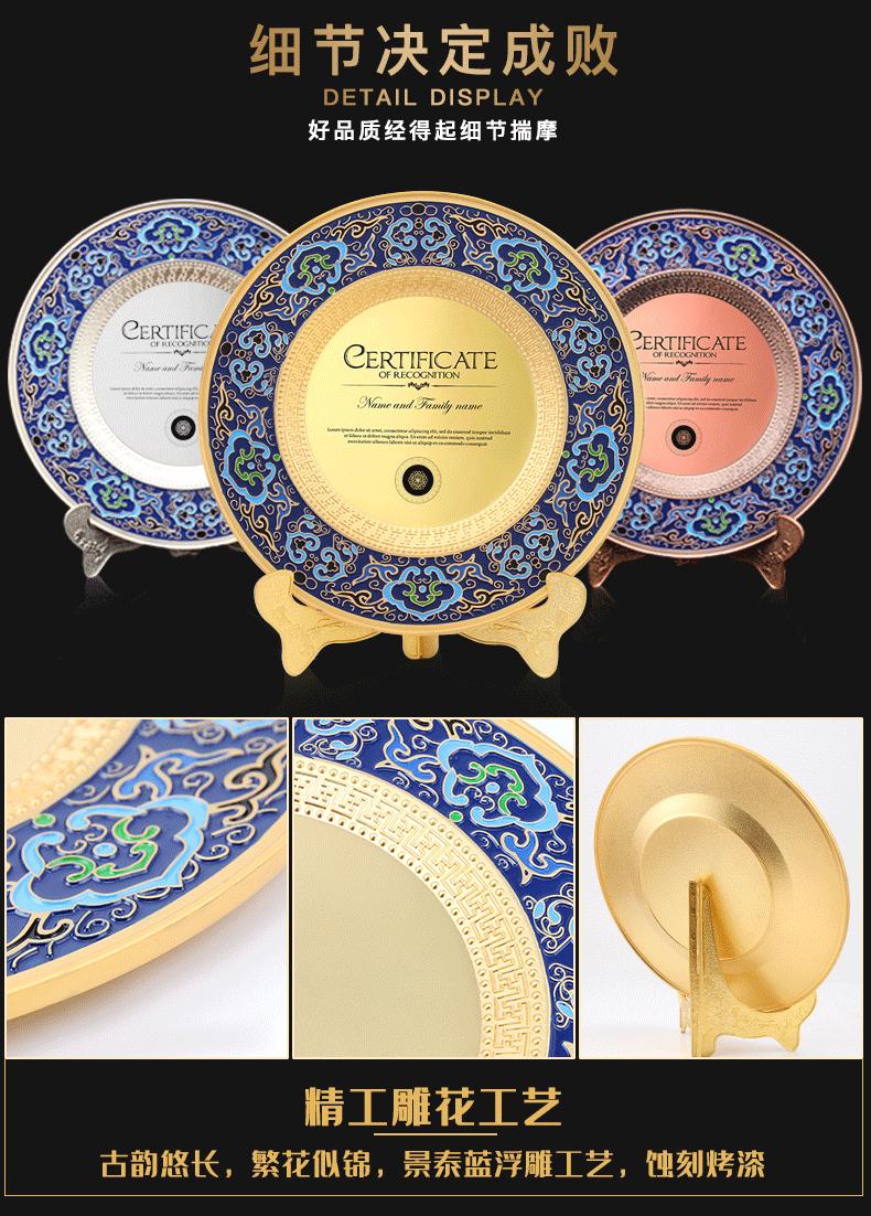 Placa de premio de cloisonné de viento, placa conmemorativa de metal, placa de premio de medalla de lámina de oro, regalo del Día del Maestro, reconocimiento de honor al por mayor