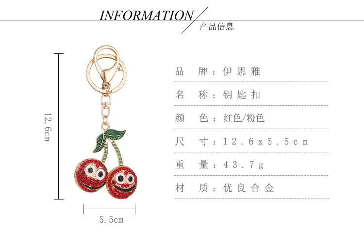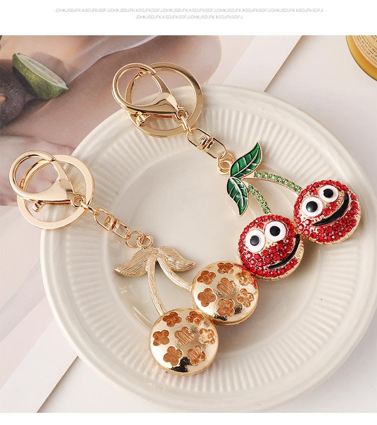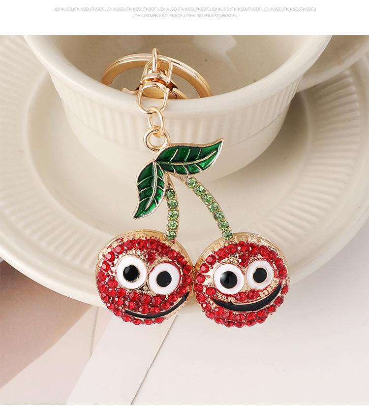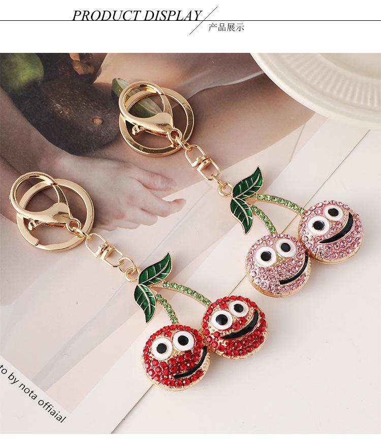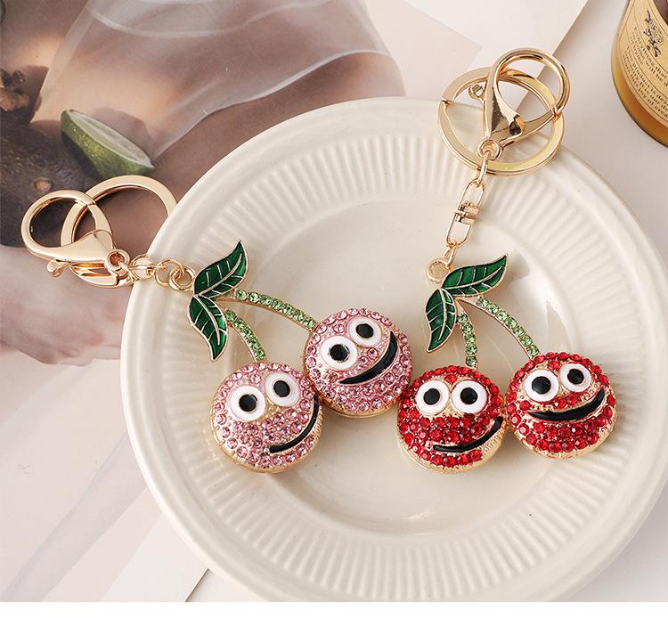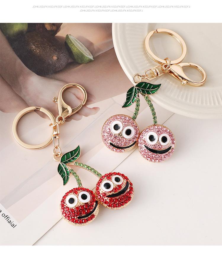 Compra Nuevo y creativo llavero de coche con forma de cereza sonriente con incrustaciones de diamantes, colgante para bolso, llavero de metal, pequeños regalos al por mayor al por mayor en Joom.pro