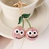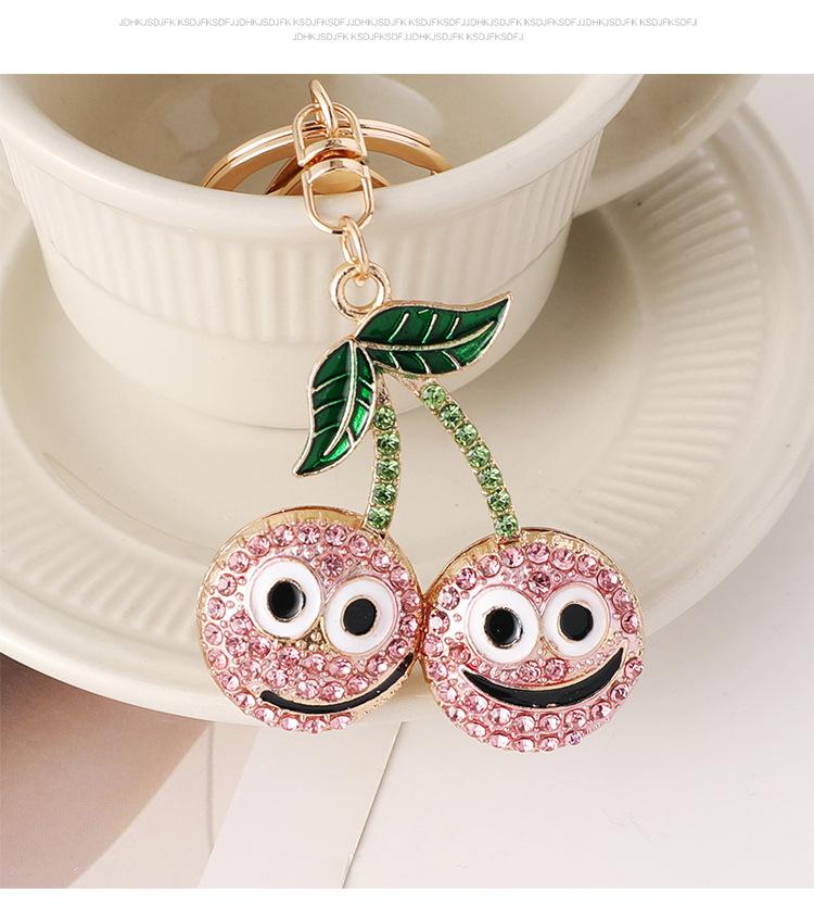 Nuevo y creativo llavero de coche con forma de cereza sonriente con incrustaciones de diamantes, colgante para bolso, llavero de metal, pequeños regalos al por mayor